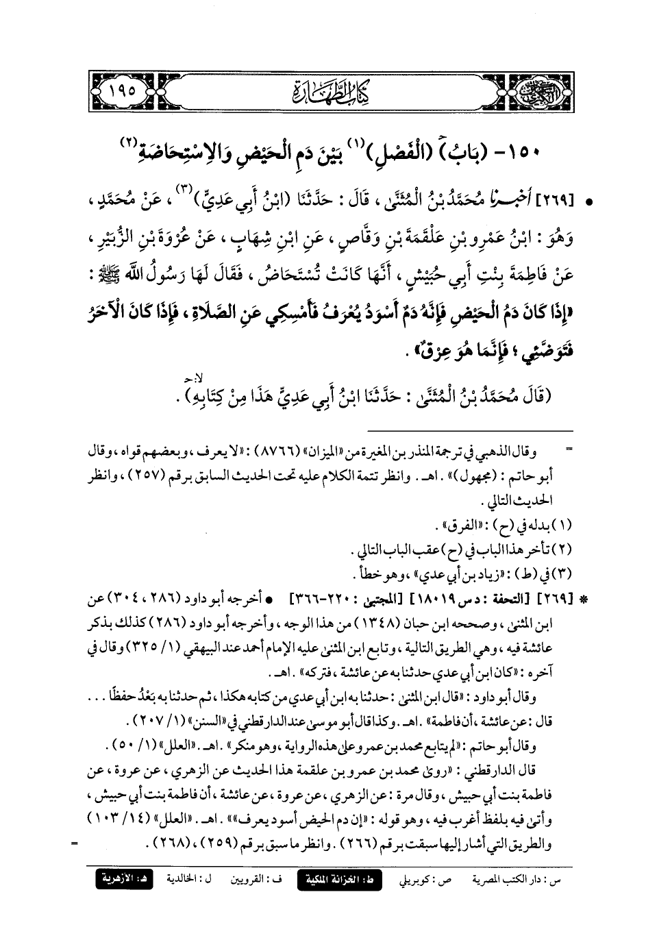 150 - بَابُ الفَصْلُ بَيْنَ دَمِ الحَيْضِ وَالاِسْتِحَاضَةِ.