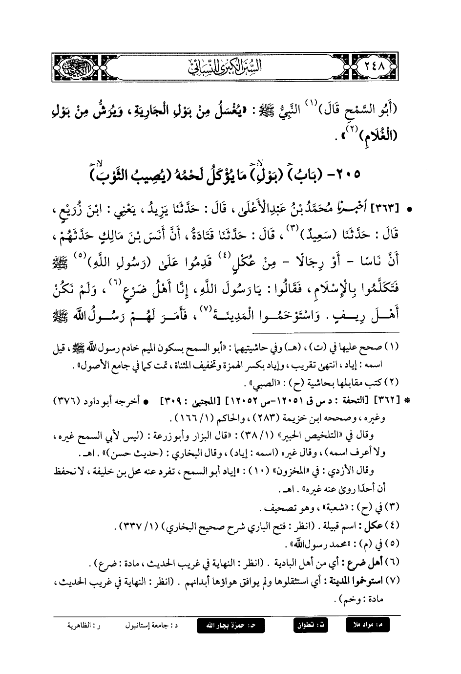 205- بَابُ بَوْلِ مَا يُؤْكَلُ لَحْمُهُ يُصِيبُ الثَّوْبَ.