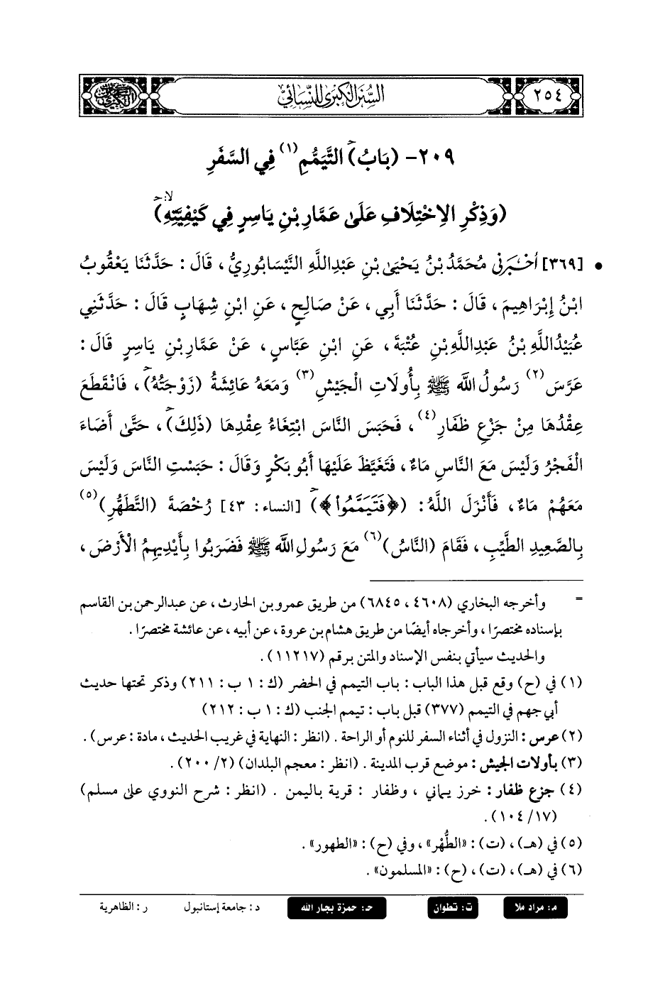 209- بَابُ التَّيَمُّمِ فِي السَّفَرِ وَذِكْرُ الاِخْتِلافِ عَلَى عَمَّارِ بنِ يَاسِرٍ فِي كَيْفِيَّتِهِ.