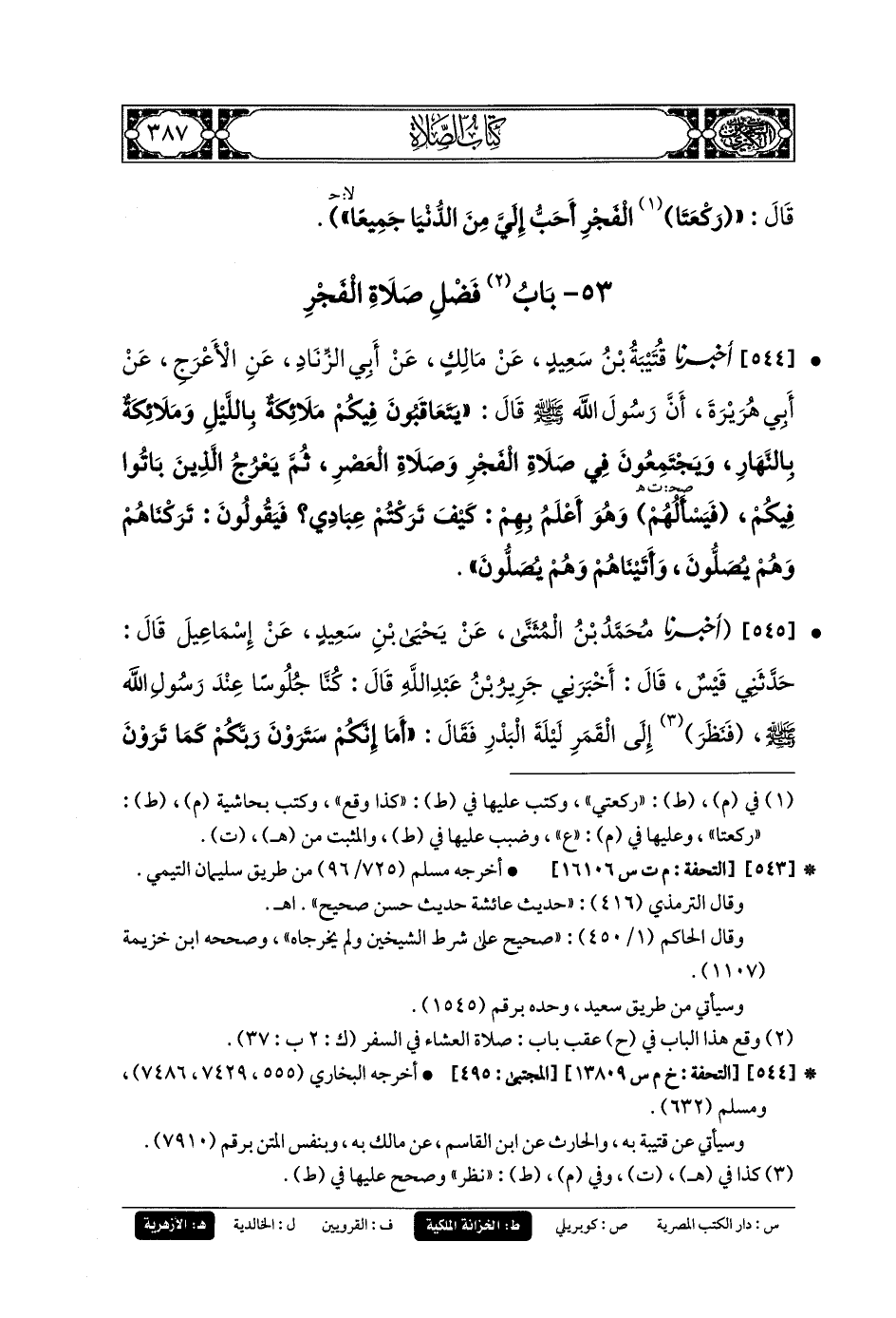 53- بَابُ فَضْلِ صَلاةِ الفَجْرِ.