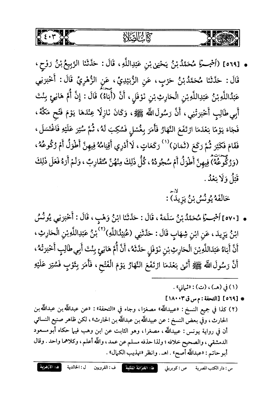(1) قال محققو طبعة التأصيل: كذا في جميع النسخ، "عُبَيدُ الله» مصغرًا، وجاء في «تحفة الأَشراف": «عن عَبد اللهِ بن عَبد اللهِ بن الحارث»، وفي بعض النسخ: «عن عُبَيد اللهِ بن عَبد اللهِ بن الحارث».