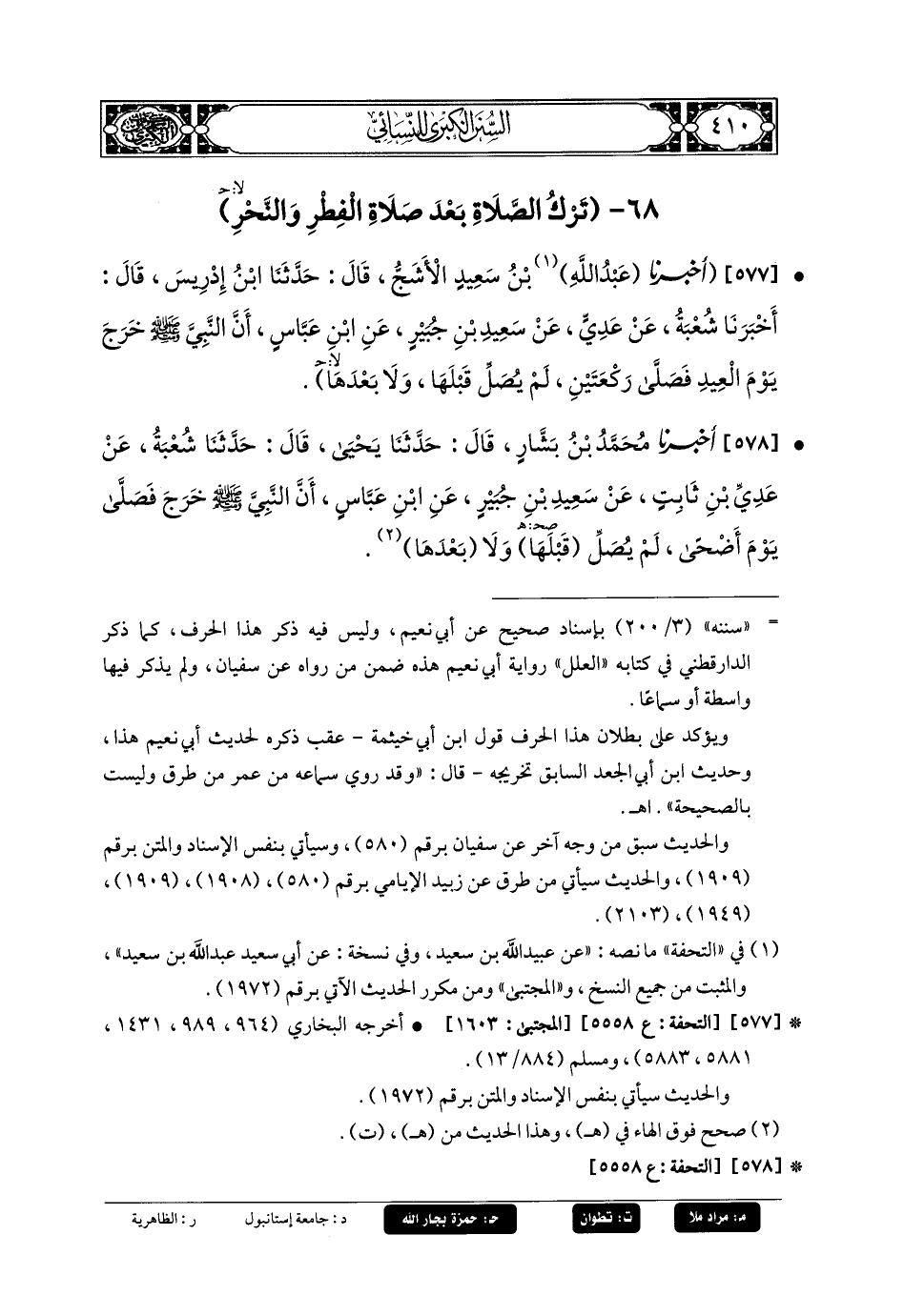(1) قال محققو طبعة التأصيل: في «تحفة الأَشراف» (5558) ما نصه: «عَن عُبَيد اللهِ بن سَعِيد، وفي نسخة: عن أَبي سَعِيد عَبد اللهِ بن سَعِيد»، والمثبت من جميع النسخ، "والمجتبى» طبعة التأصيل (1603).