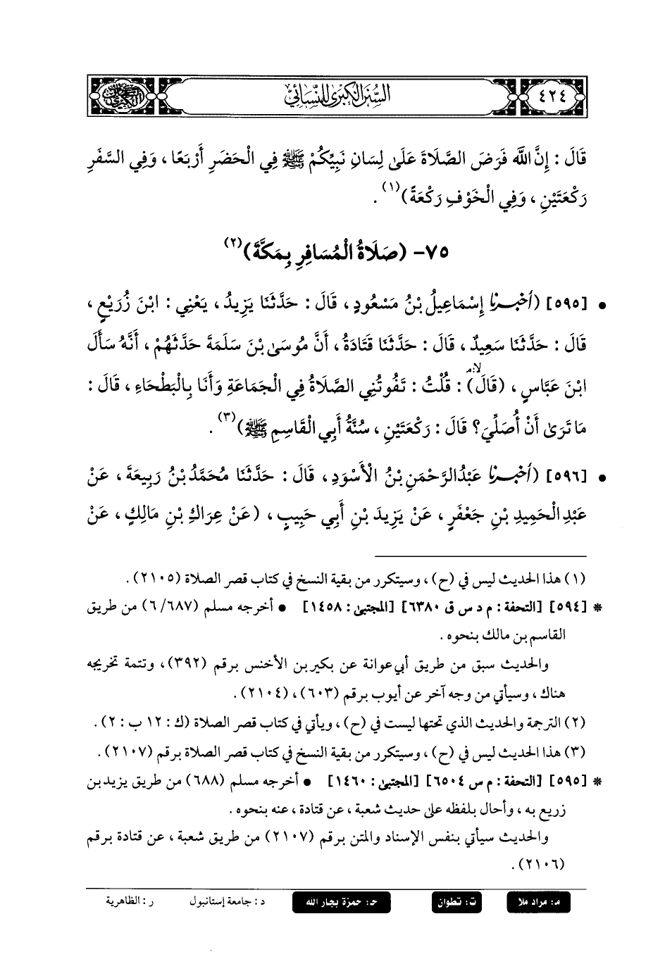 75- صَلاةُ المُسَافِرِ بِمَكَّةَ.