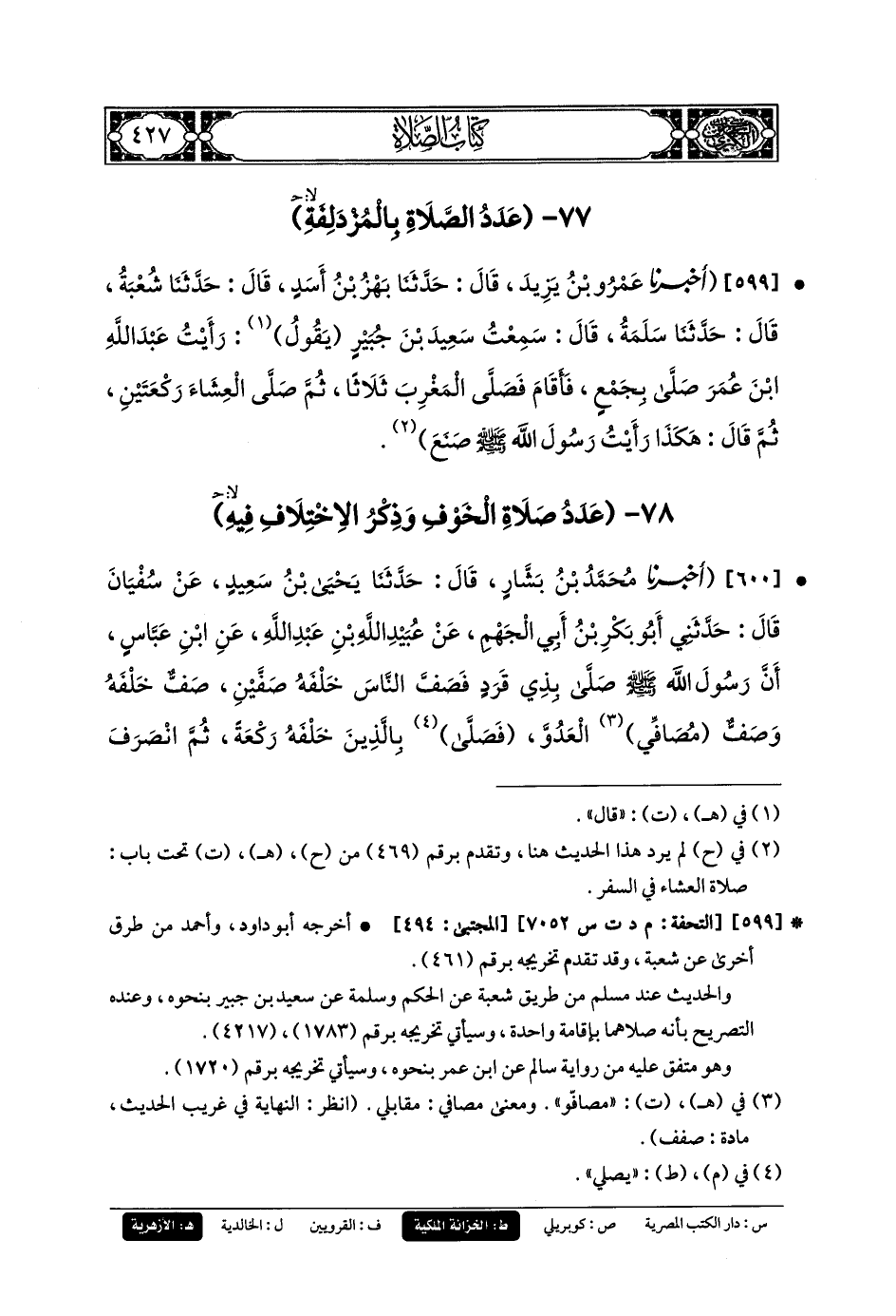 78- عَدَدُ صَلاةِ الخَوْفِ وَذِكْرُ الاِخْتِلافِ فِيهِ.