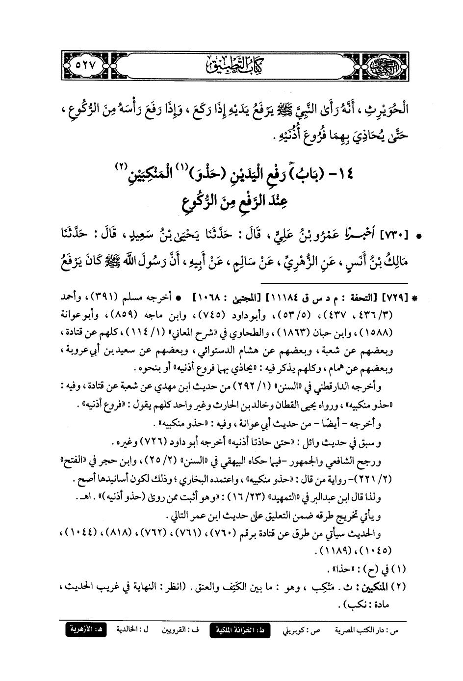 14- بَابُ رَفَعِ اليَدَيْنِ حَذْوَ المَنْكِبَيْنِ عِنْدَ الرَّفْعِ مِنَ الرُّكُوعِ.