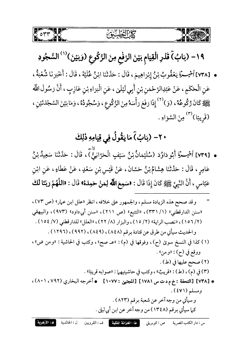 19- بَابُ قَدْرِ القِيَامِ بَيْنَ الرَّفْعِ مِنَ الرُّكُوعِ وَبَيْنَ السُّجُودِ.