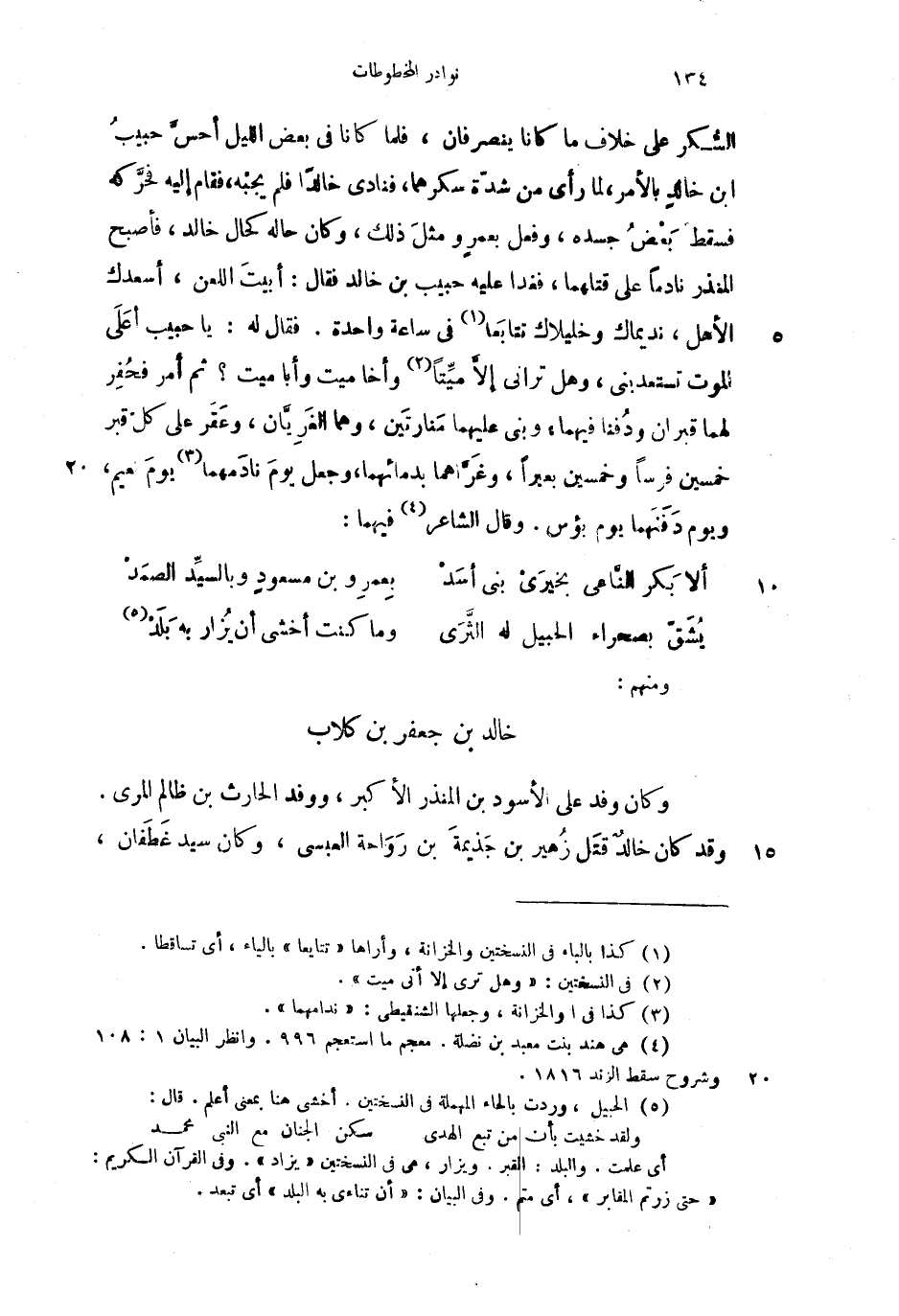 الشكر على خلاف ما كنا ينصرفان، فملا كانا في بعض الليل أحس حبيب ابن خالد بالأمر، لما رأى من شدة سكرهما، فنادى خالداً فلم يجبه، فقام إليه فحركه فسقط بعض جسده، وفعل بعمرو ومثل ذلك، وكان حاله كحال خالد، فأصبح المنذر نادماً على قتلهما، فغدا عليه حبيب بن خالد فقال: أبيت اللعن، أسعدك الأهل، نديماك وخليلاك تتابعا في ساعة واحدة. فقال له: يا حبيب أعلى الموت تستعدبني، وهل تراني إلا ميتاً وأخا ميت وأبا ميت؟ ثم أمر فحفر لهما قبران ودفنا فيهما، وبنى عليهما منارتين، وهما الغريان، وعقر على كل قبر خمسين فرساً وخمسين بعيراً، وغراهما بدمائهما، وجعل يوم نادمهما يوم ميم، ويوم دفنهما يوم بؤس. وقال الشاعر فيهما: