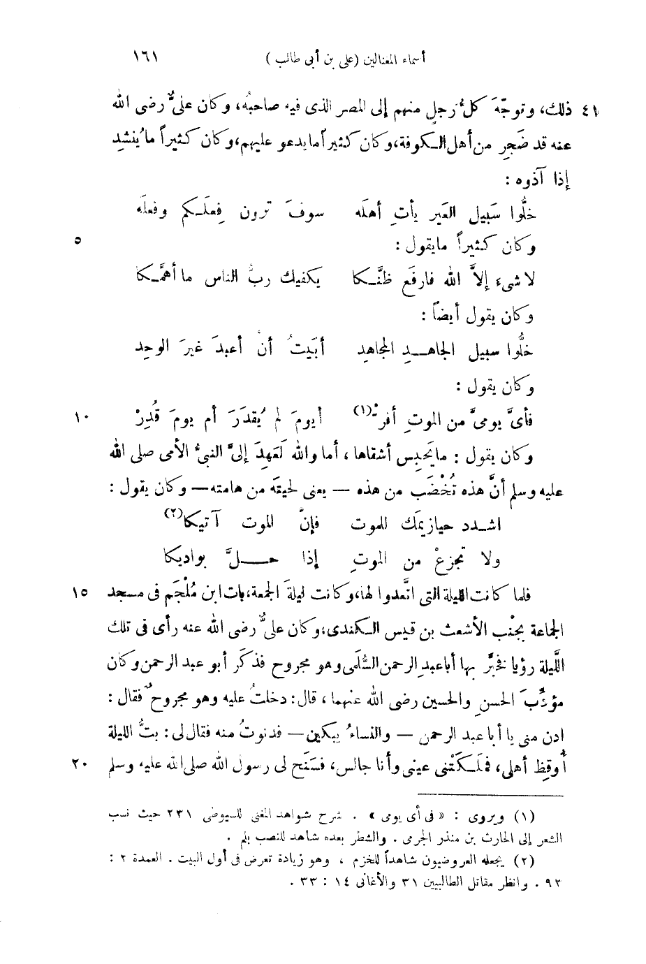 ذلك، وتوجه كل رجل منهم إلى المصر الذي فيه صاحبه، وكان علي رضي الله عنه قد ضجر من أهل الكوفة، وكان كثيراً ما يدعو عليهم، وكان كثيراً ما ينشد إذا آذوه: