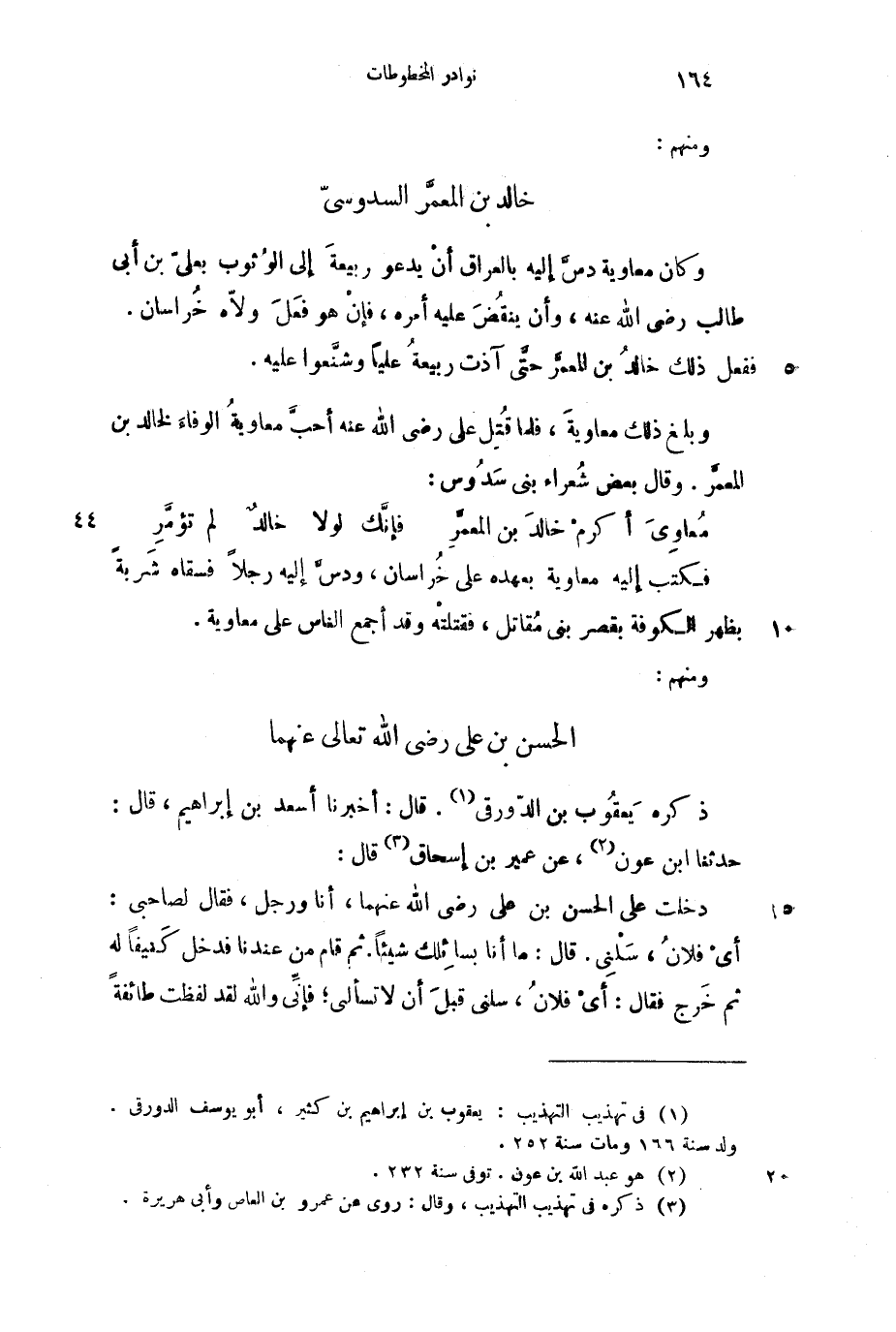 معاويَ أكرمْ خالدَ بن المعمَّرِ ... فإنَّك لولا خالدٌ لم تؤمَّرِ
