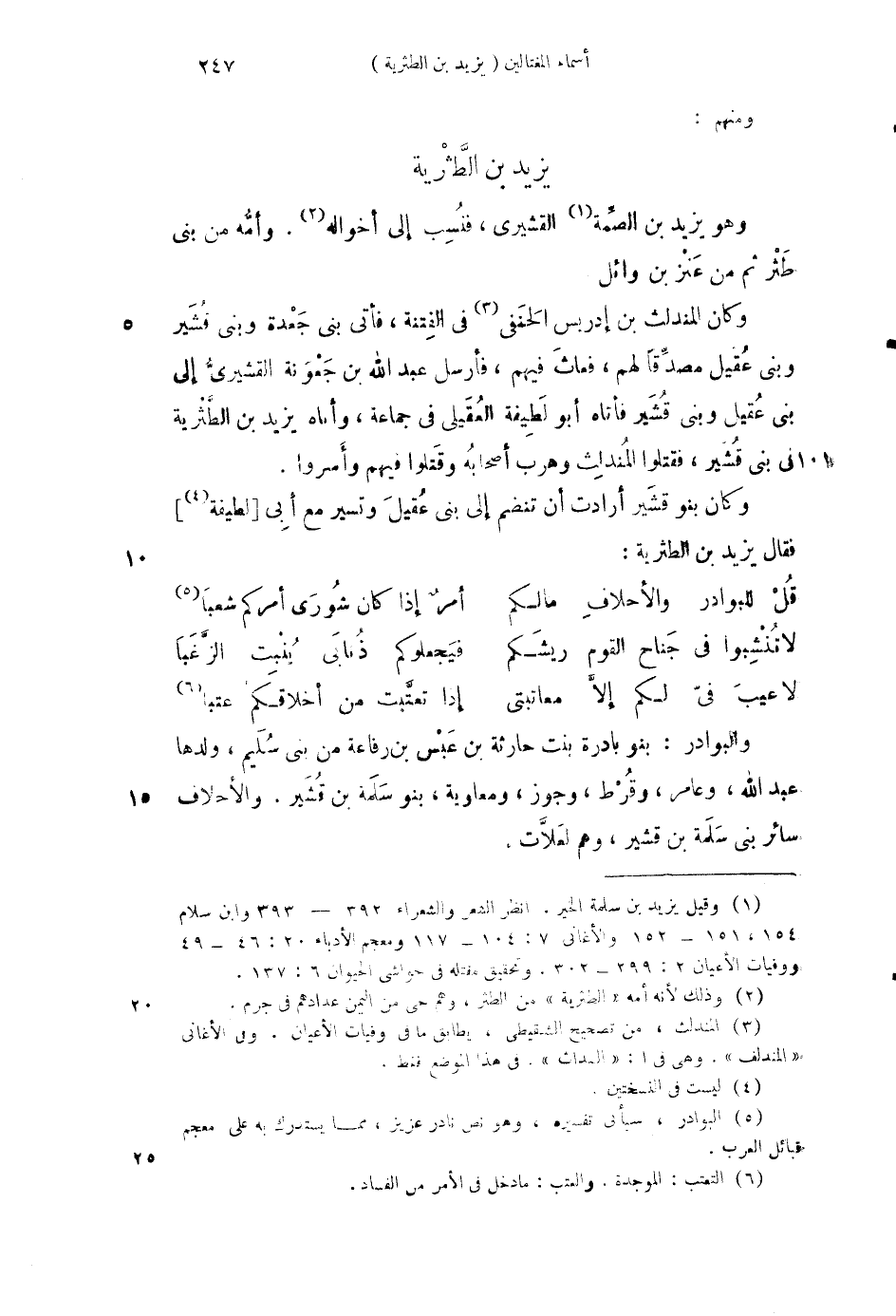 وكان بنو قشير أرادت أن تنضم إلى بني عقيل وتسير مع أبي [لطيفة] فقال يزيد بن الطثرية: