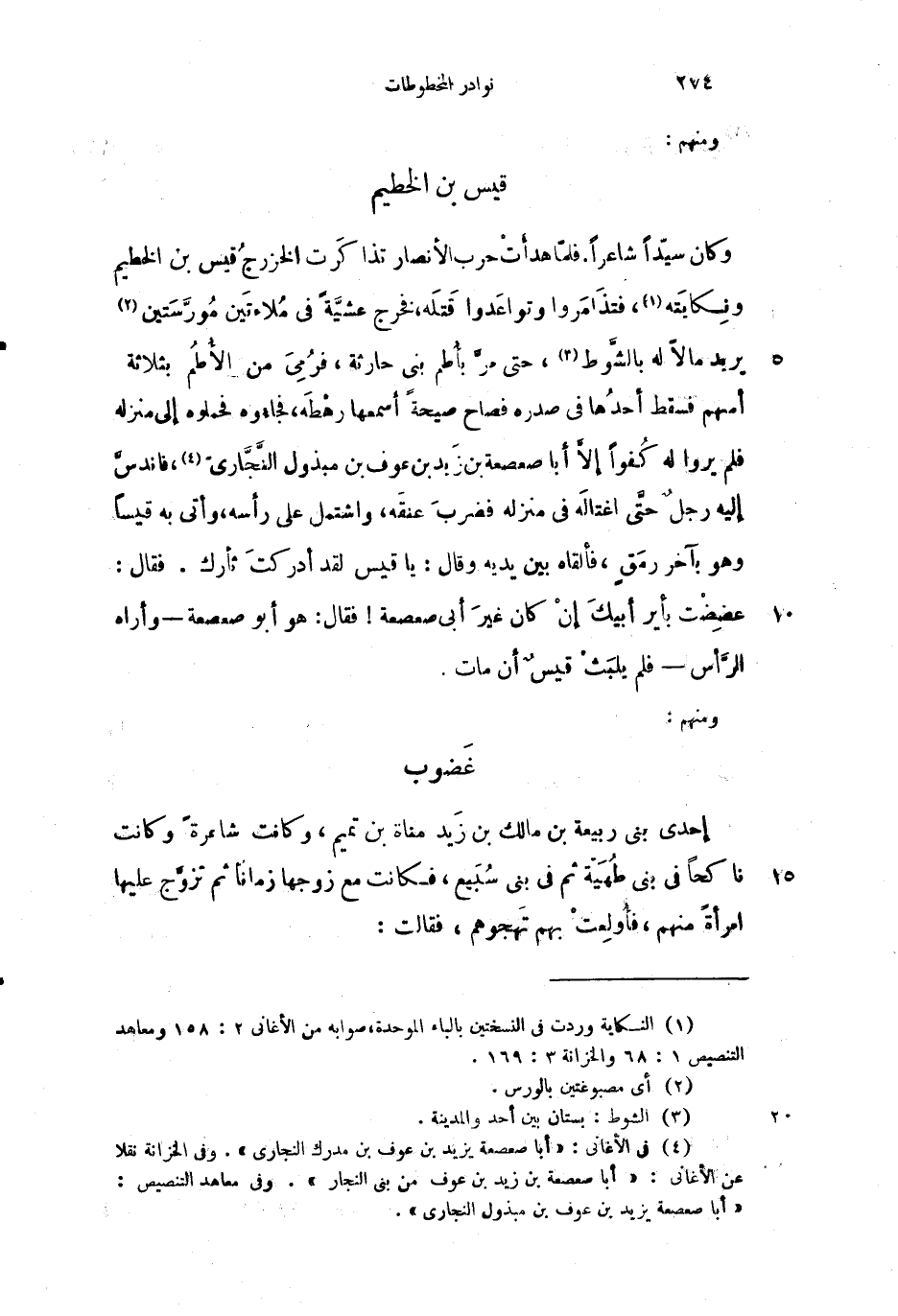 وكان سيداً شاعراً. فلم هدأت حرب الأنصار تذاكرت الخزرج قيس بن الخطيم ونكايته، فتذامروا وتواعدوا قتله، فخرج عشية في ملاءتين مورستين يريد مالاً له بالشواط، حتى مر بأطم بني حارثة، فرمى من الأطم بثلاثة أسهم فسقط أحدها في صدره فصاح صيحة أسمعها رهطه، فجاءوه فحملوه إلى منزله فلم يروا له كفواً إلا أبا صعصعة بن عوف بن مبذول النجارى، فاندس 'ليه رجل حتى اغتاله في منزله فضرب عنفه، واشتمل على رأسهن وأتى به قيساً وهو بآخر رمقٍ، فألقاه بين يديه وقال: يا قيس لقد أدركت ثأرك. فقال: عضضت بأير أبيك إ، كان غير أبي صعصعة! فقال: هو أبو صعصعة وأراه الرأس فلم يلبث قيس أن مات.