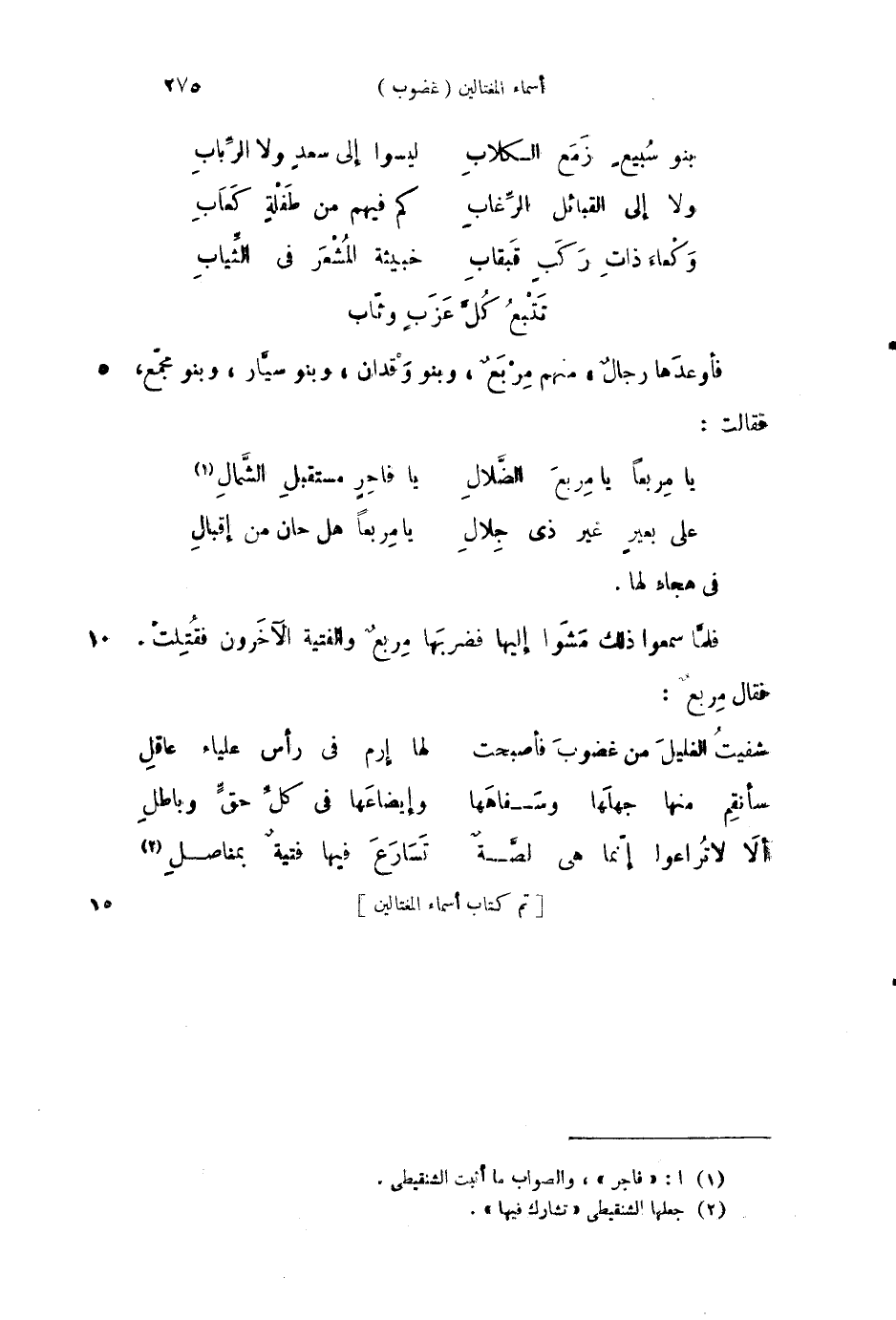 شفيتُ الغليلَ من غضوبَ فأصبحت ... لها إرم في رأس علياء عاقلِ