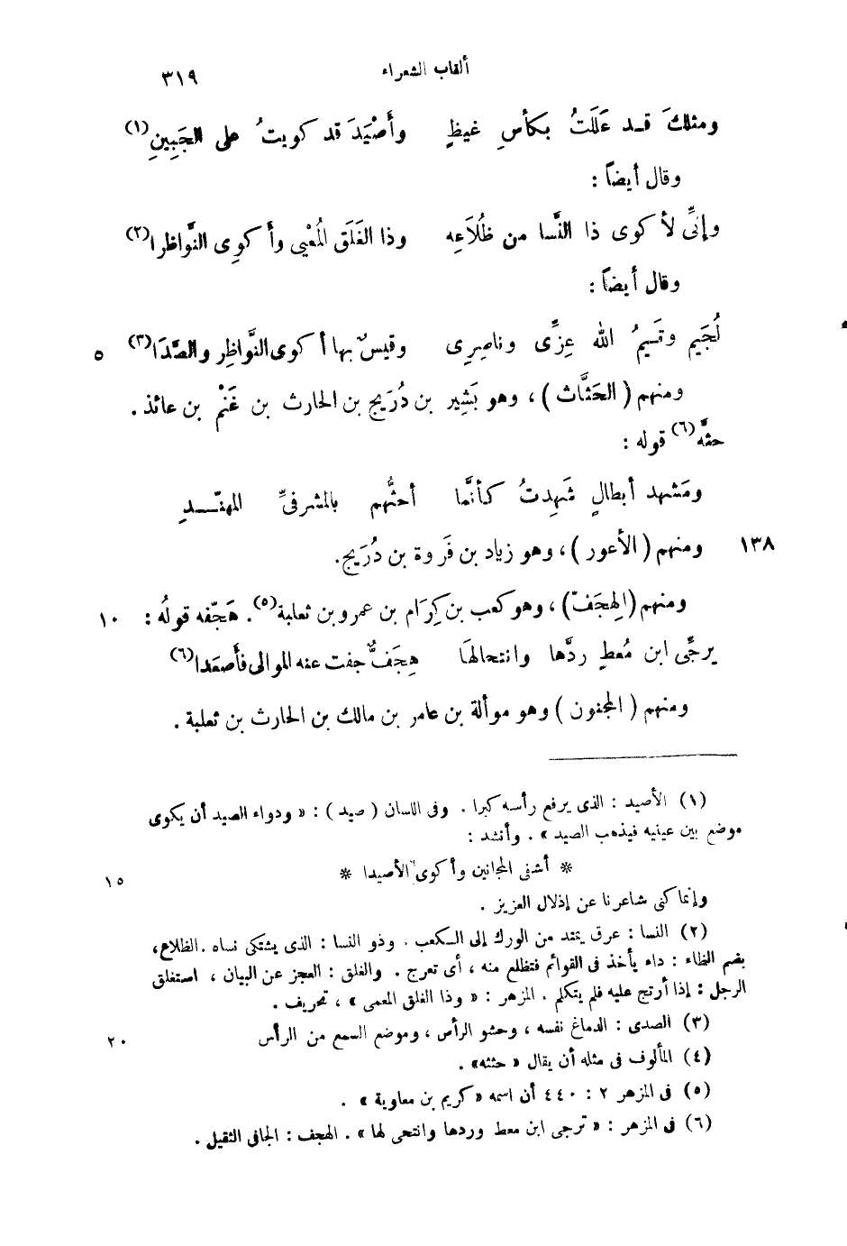 ومنهم (المجنون) وهو موالة بن عامر بن مالك بن الحارث بن ثعلبة.