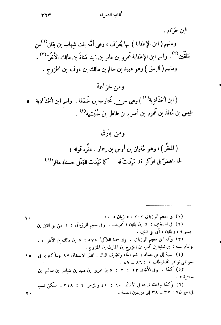 ومنهم (ابن الإطنابة) بها يعرف، وهي أمه بنت شهاب بن بقان من بلقين، واسم ابن الإطنابة عمرو بن عامر بن زيد مناة بن مالك الأغر.