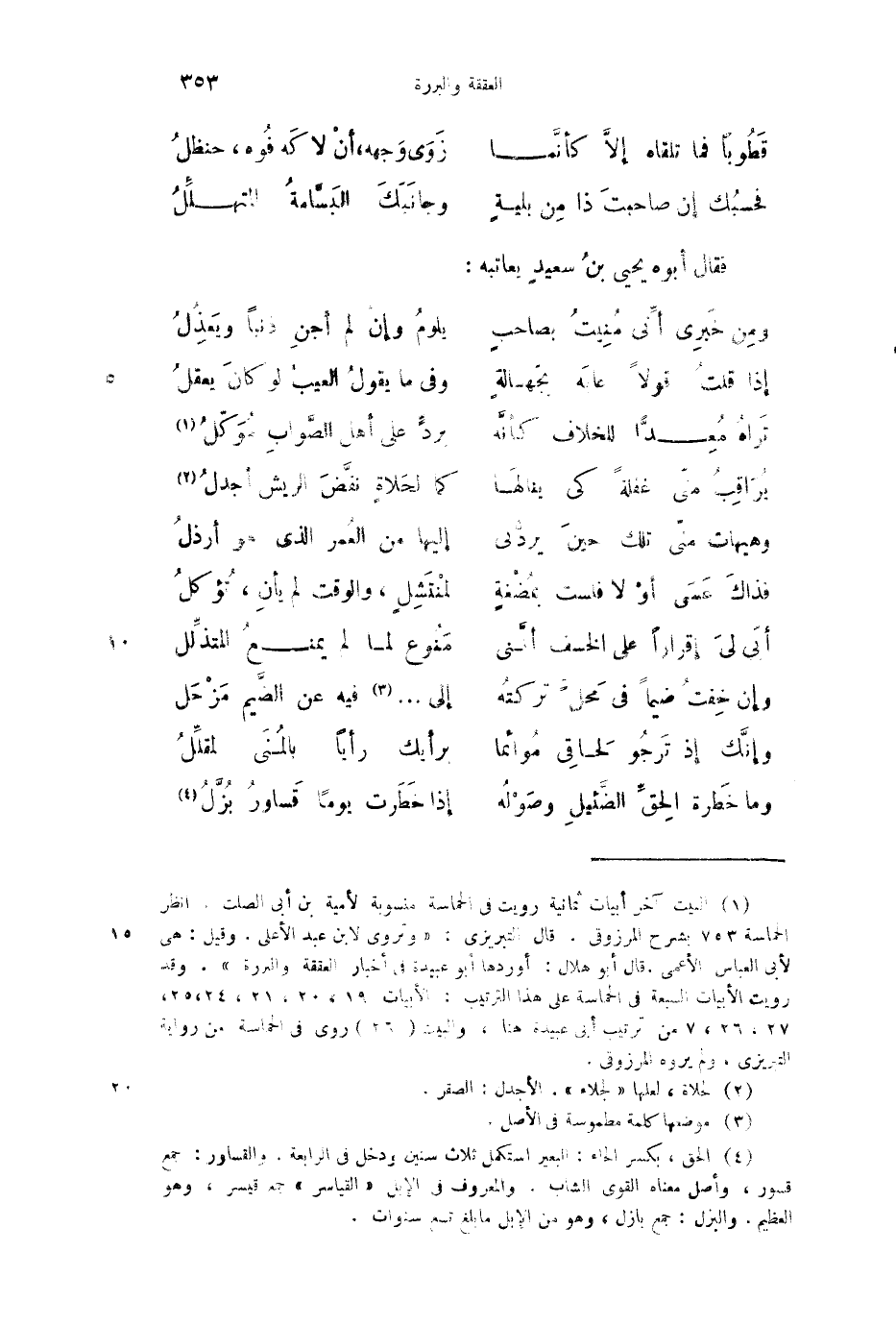 قطوباً فما تلقاه إلاَّ كأنَّما ... زوى وجهه، أن لاكه فوه، حنظلُ
