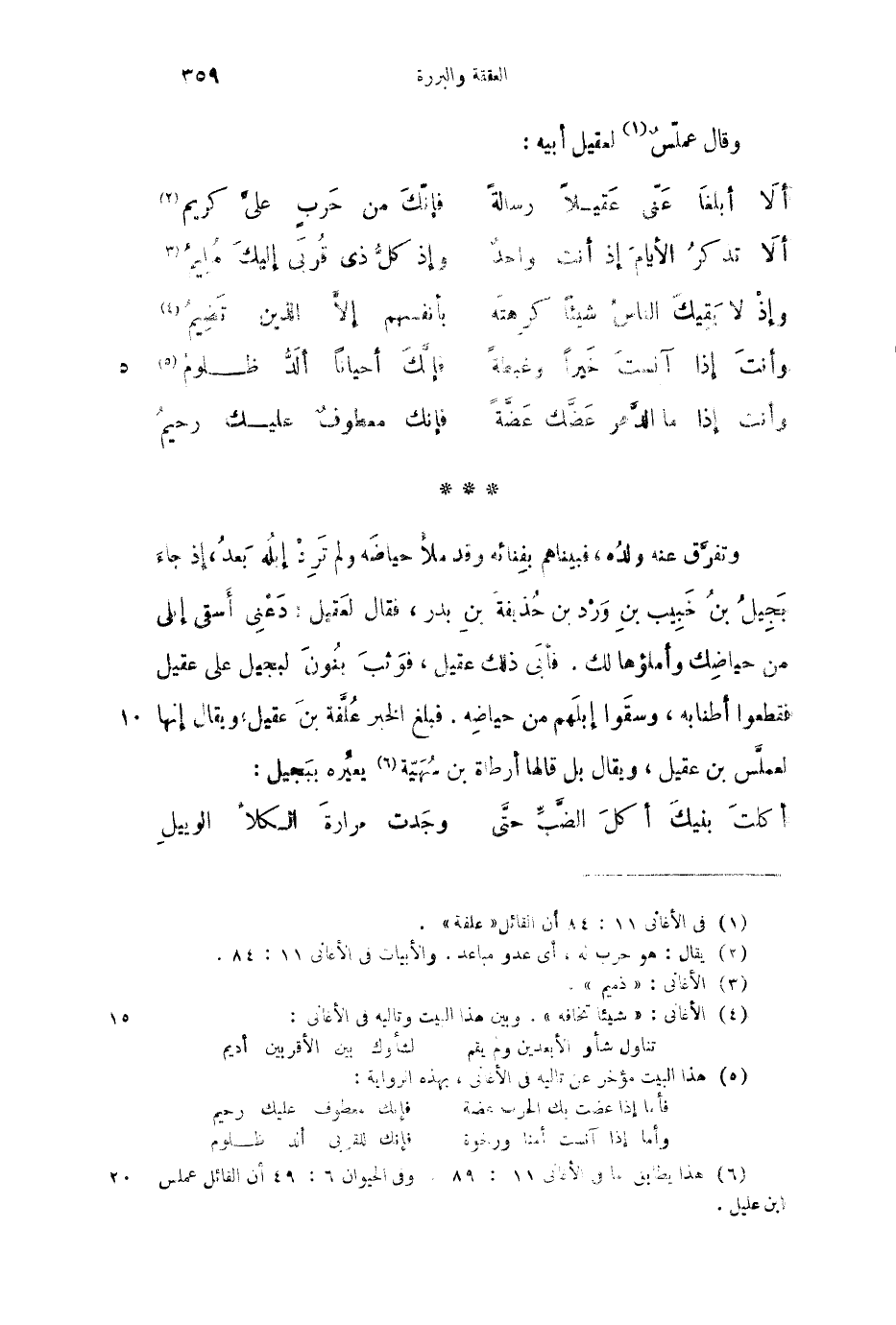 ألا أبلغا عنى عقيلاً رسالةً ... فإنكَ من حربٍ علىَّ كريم