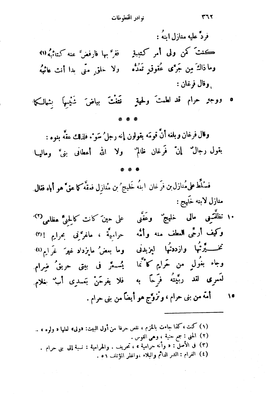 فسلط على منزل بن فرغان ابنه خليج بن منازل فعقه كما عق أباه فقال منازل لابنه خليج: