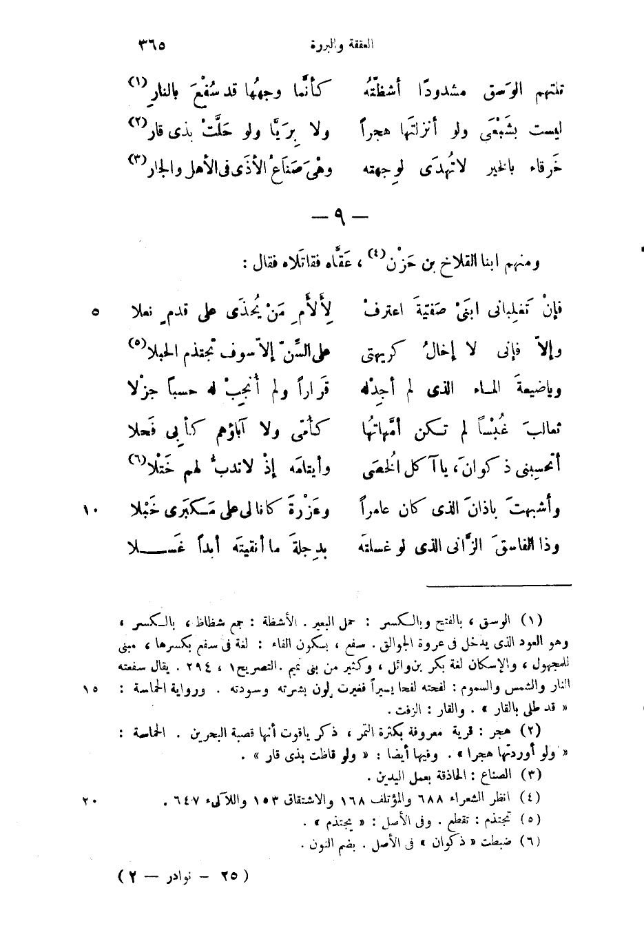 ومنهم ابنا القلاخ بن حزن، عقاه فقاتلاه فقال: