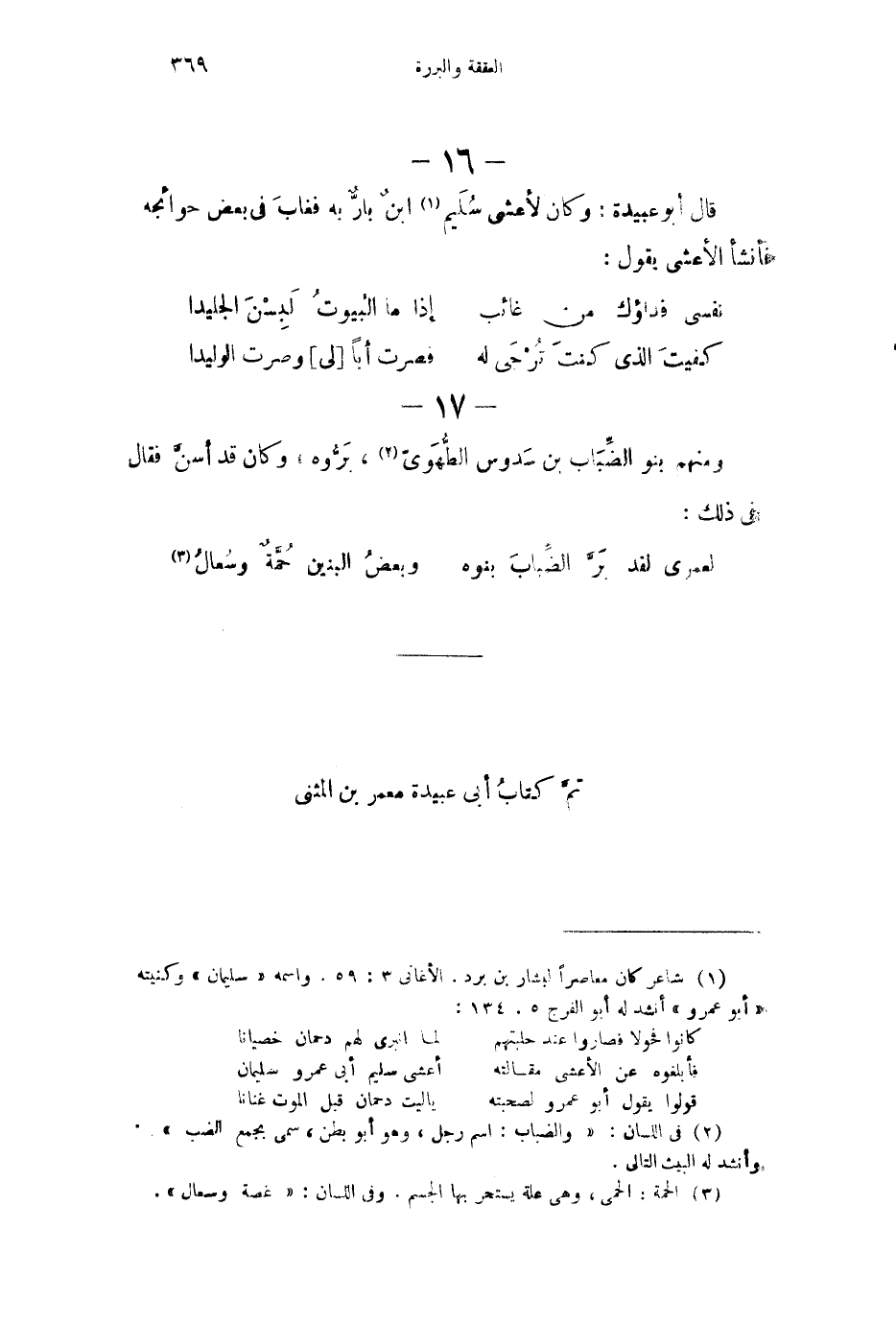 لعمري لقد برَّ الضَّبابَ بنوه ... وبعضُ البنين حمَّةٌ وسعالُ