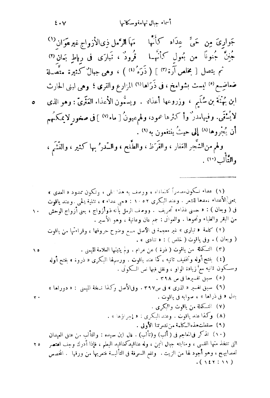 ثم يتصل [بخلص آرة] (ذره) ، وهي جبال كثيرة متصلة ضعاضع ليست بشوامخ، في ذراها المزارع والقرى، وهي بني الحارث ابن بهثة بن سليم، وزورعها أعذاء، ويسمون الأعذاء العثرى: وهو الذي لا يسقى وفيها مدر وأكثرها عمود، ولهم عيون [ماء] في صخور لا يمكنهم أن يجروها إلى حيث ينتفعون به.