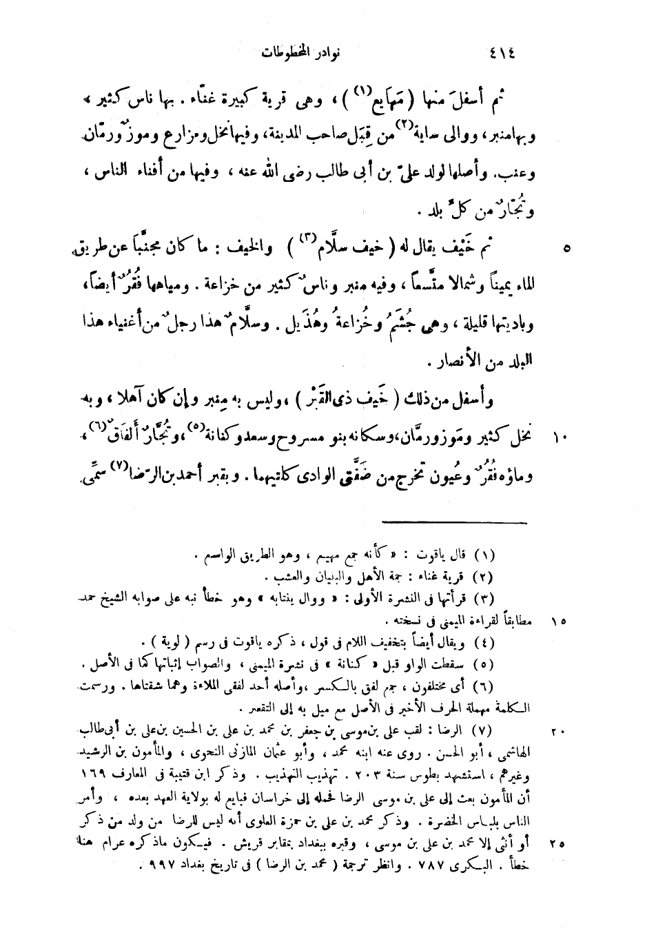 وأسفل من ذلك (خيف ذي القبر) ، وليس به منبر وإن كان آهلا، وبه نخل كثير وموز ورمان، وسكانه بنو مسروح وسعد وكنانة، وتجار ألفاق، وماؤه فقر وعيون تهرج من صفتي الوادي كلتيهما، وبقبر احمد بن الرضا سمي