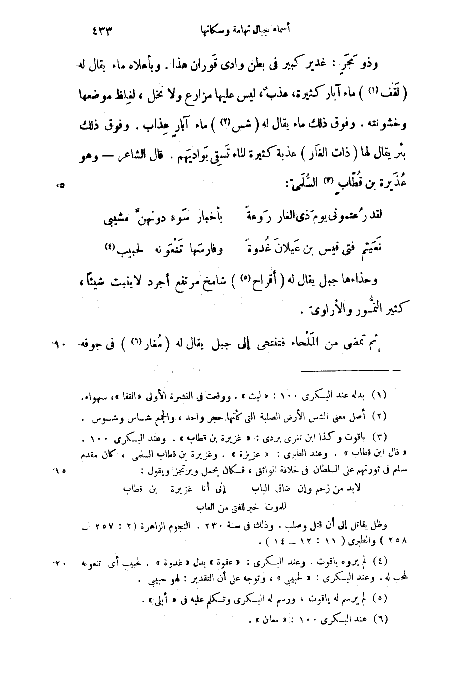 وذو مجر: غدير كبير في بطن وادي قوران هذا، وبأعلاه ماء يقال له (لقف) ماء آبار كثير، عذب، ليس عليها مزارع ولا نخل، لغلط موضعها وخشونته، وفوق ذلك ماء يقال له (شس) ماء آبار عذاب، وفوق ذلك بئر يقال لها (ذات الغار) عذبة كثيرة الماء تسقي بواديهم، قال الشاعر وهو عذيرة بن قطاب السلمى:
