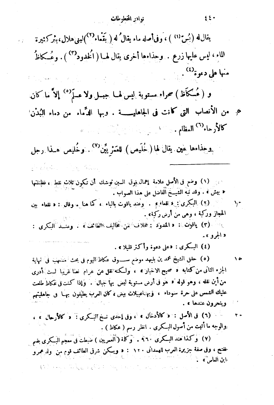 و (عكاظ) صحراء مستوية ليس لها جبل ولا علم إلا ما كان من الأنصاب التي كانت في الجاهلية، وبها الدماء من دماء البدن كالأرحاء العظام.