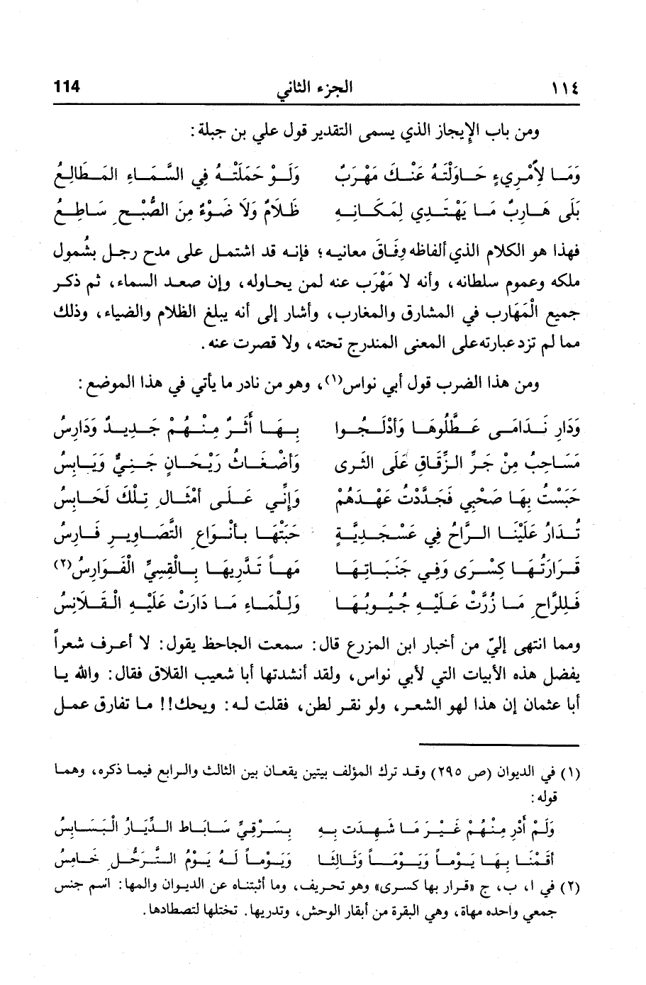 ومن باب الإيجاز الذي يسمى التقدير قول علي بن جبلة: