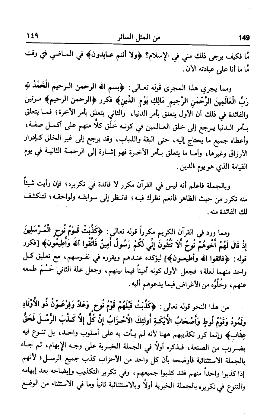 ومما يجري هذا المجرى قوله تعالى: بسم الله الرحمن الرحيم الحمد لله رب العالمين الرحمن الرحيم مالك يوم الدين