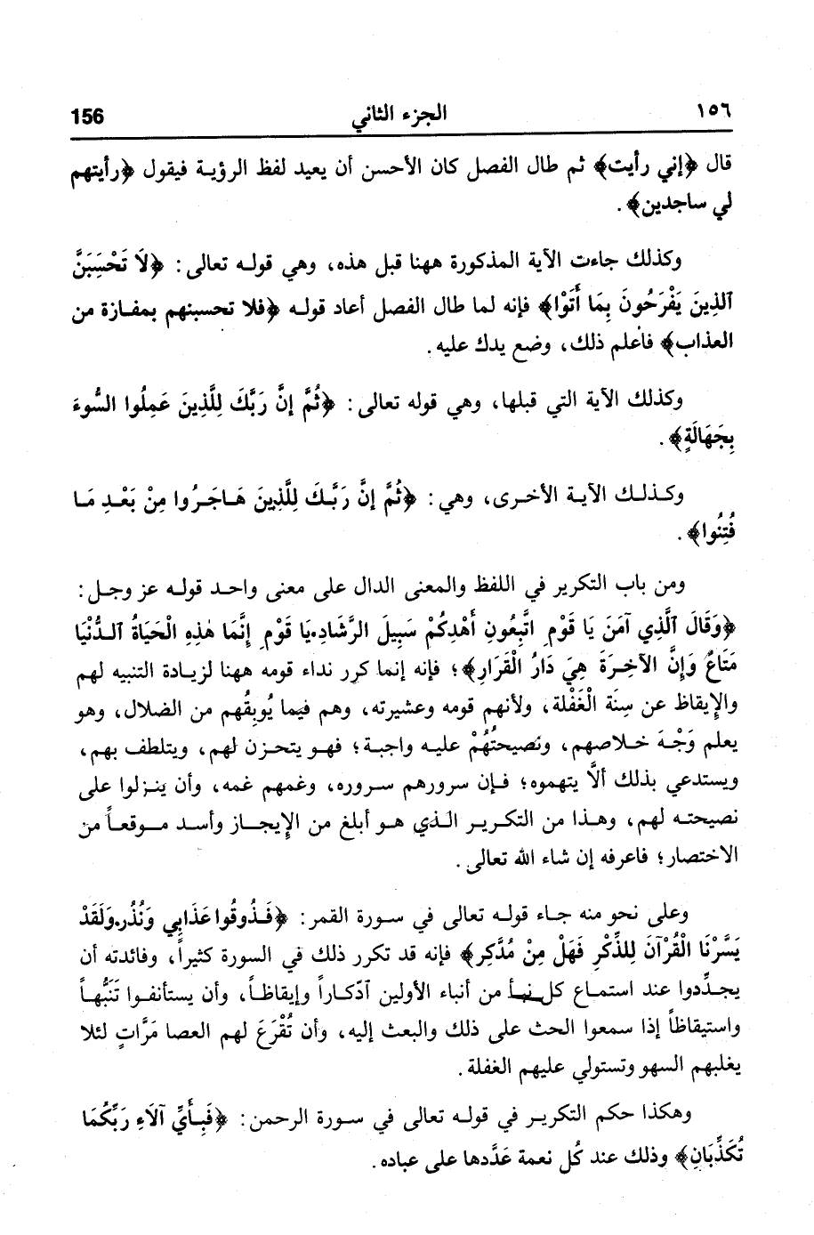 فإنه قد تكرر ذلك في السورة كثيرا، وفائدته أن يجدّدوا عند استماع كل نبأ من أنباء الأولين ادّكارا وإيقاظا، وأن يستأنفوا تنبّها واستيقاظا إذا سمعوا الحث على ذلك والبعث إليه، وأن تقرع لهم العصا مرّات لئلا يغلبهم السهو وتستولي عليهم الغفلة.