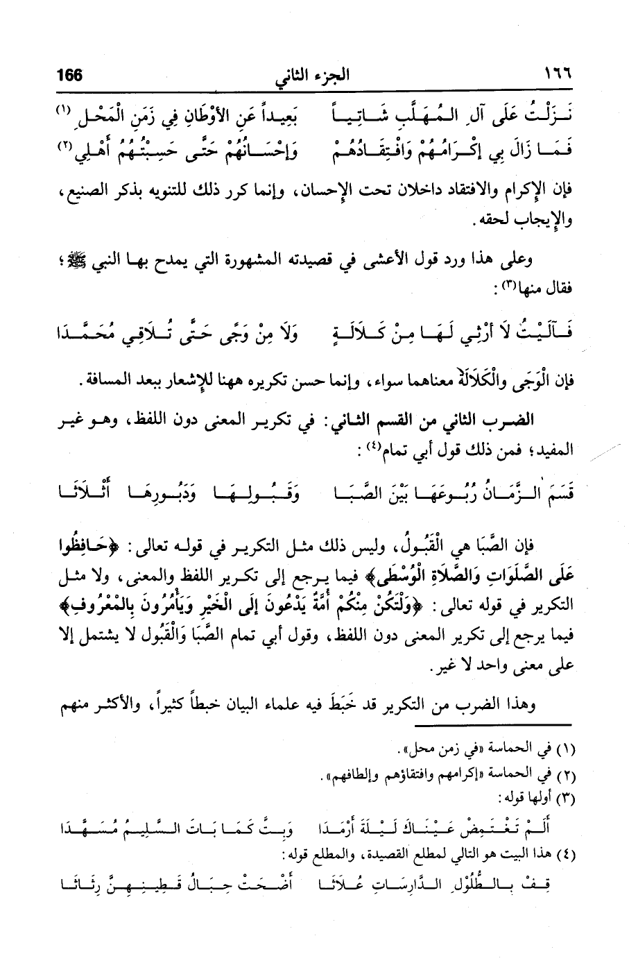 فيما يرجع إلى تكرير المعنى دون اللفظ، وقول أبي تمام الصّبا والقبول لا يشتمل إلا على معنى واحد لا غير.