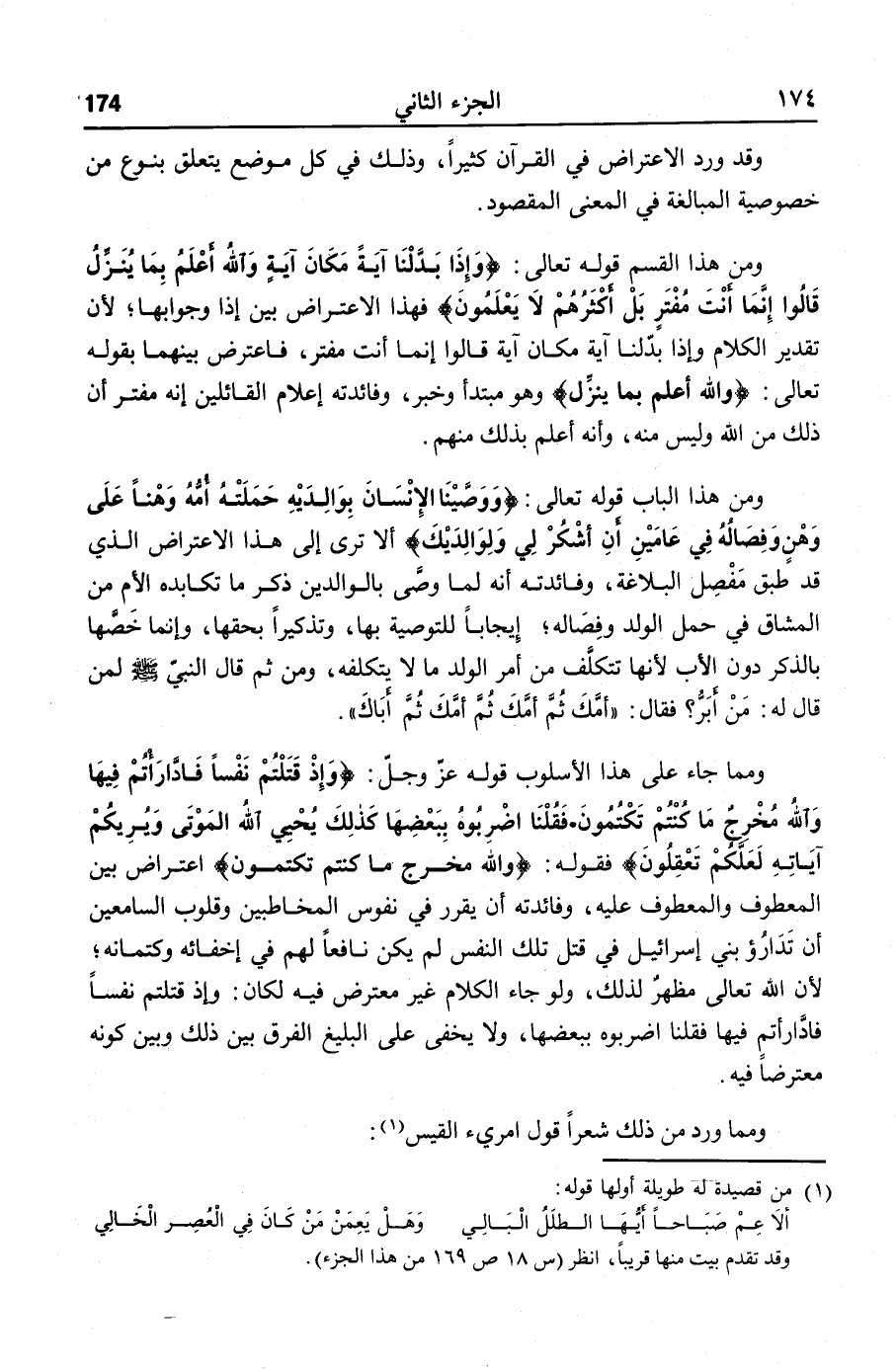 وقد ورد الاعتراض في القرآن كثيرا، وذلك في كل موضع يتعلق بنوع من خصوصية المبالغة في المعنى المقصود.
