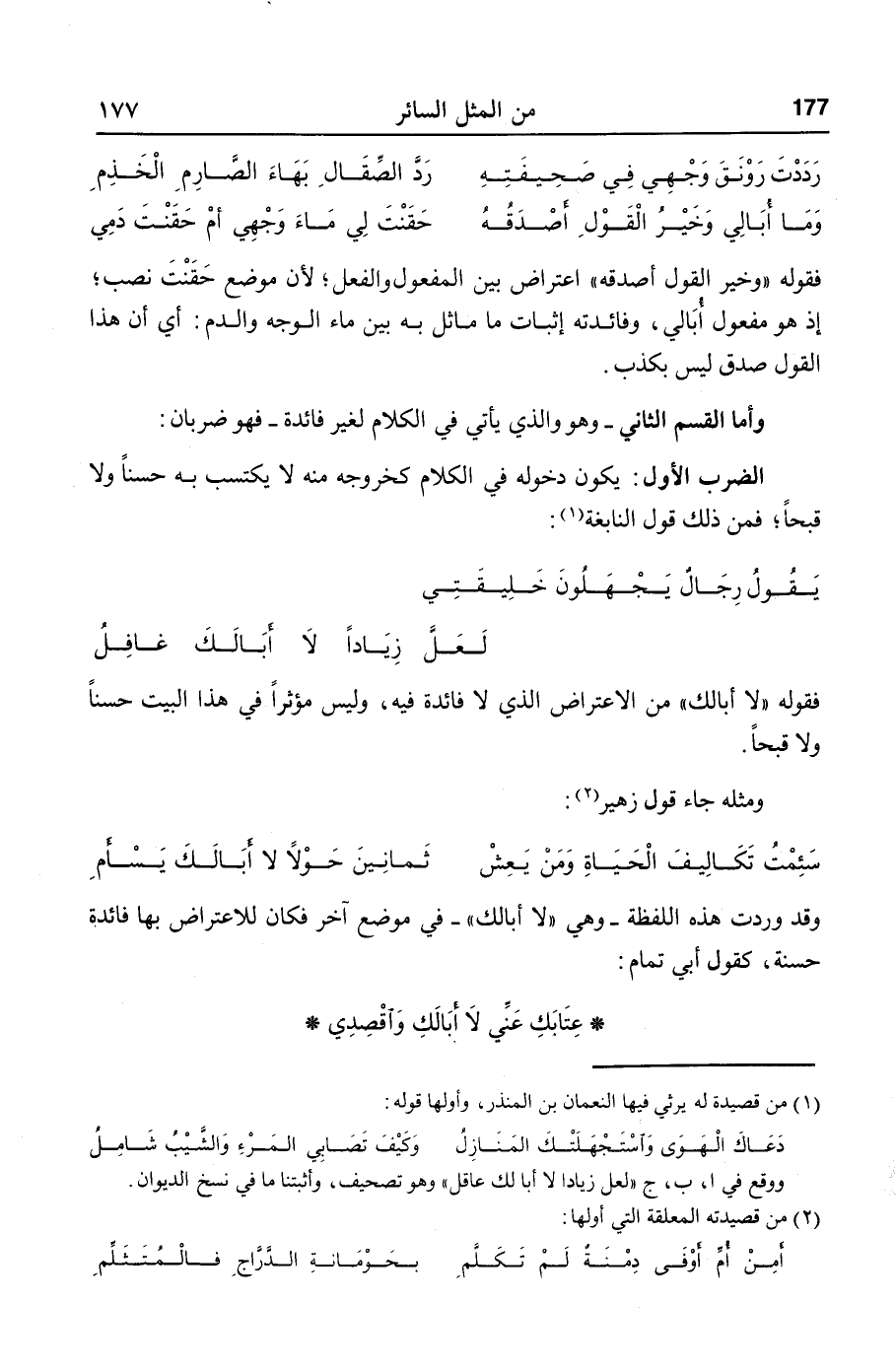 وقد وردت هذه اللفظة- وهي «لا أبالك» - في موضع آخر فكان للاعتراض بها فائدة حسنة، كقول أبي تمام: