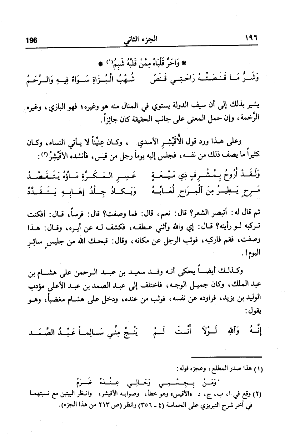 كثيرا ما يصف ذلك من نفسه، فجلس إليه يوما رجل من قيس، فأنشده الأقيشر «2» :
