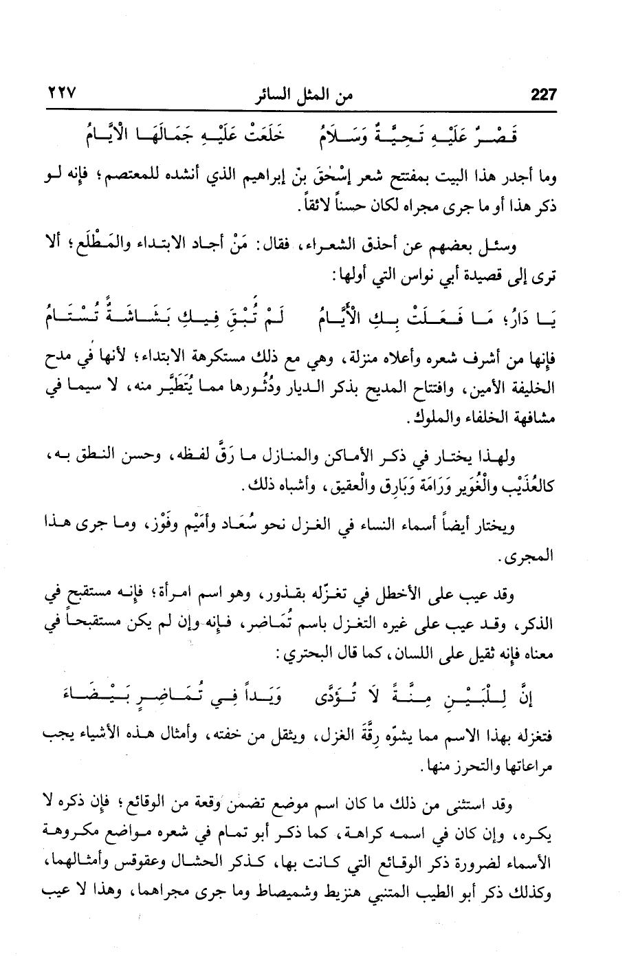فتغزله بهذا الاسم مما يشوّه رقّة الغزل، ويثقل من خفته، وأمثال هذه الأشياء يجب مراعاتها والتحرز منها.