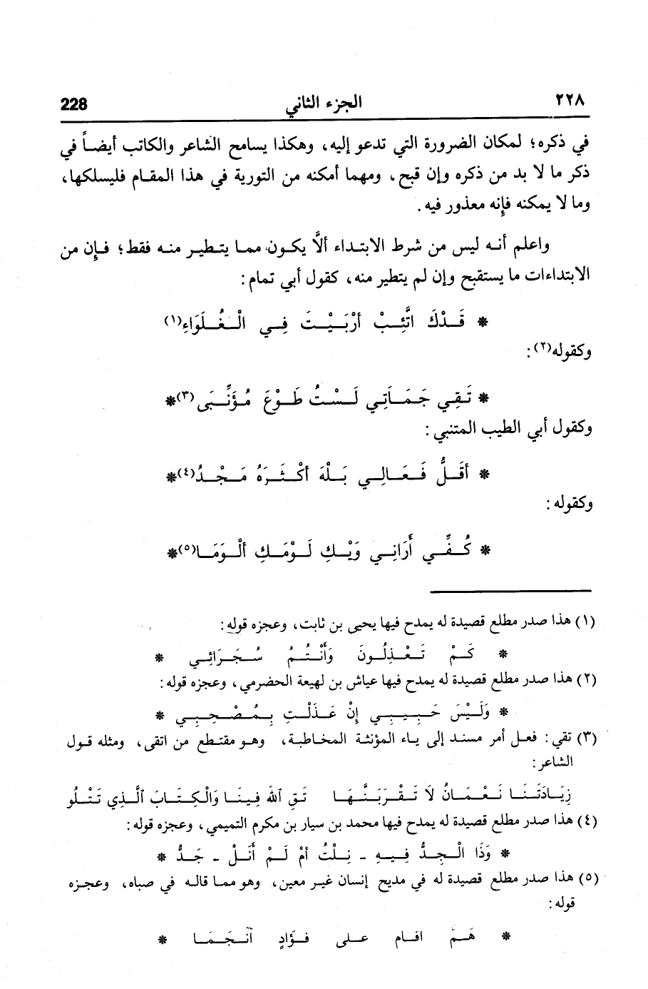 واعلم أنه ليس من شرط الابتداء ألّا يكون مما يتطير منه فقط؛ فإن من الابتداءات ما يستقبح وإن لم يتطير منه، كقول أبي تمام: