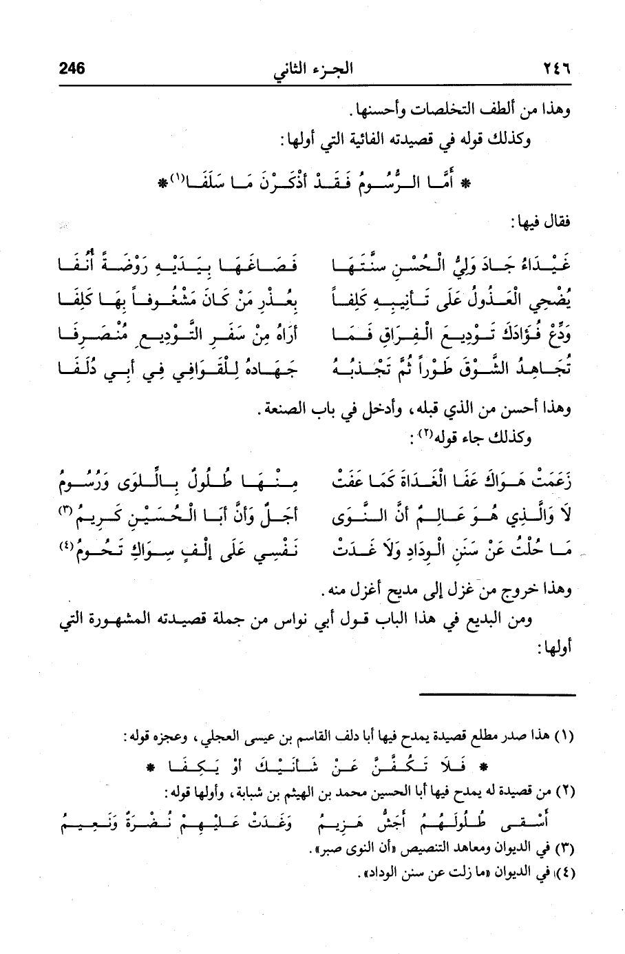 ومن البديع في هذا الباب قول أبي نواس من جملة قصيدته المشهورة التي أولها: