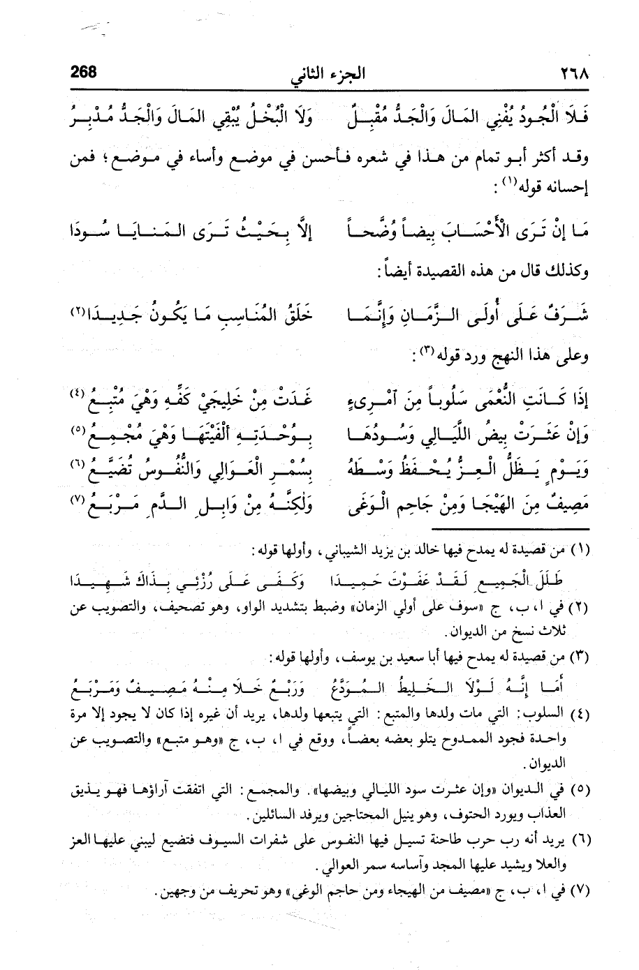 وقد أكثر أبو تمام من هذا في شعره فأحسن في موضع وأساء في موضع؛ فمن إحسانه قوله «1» :