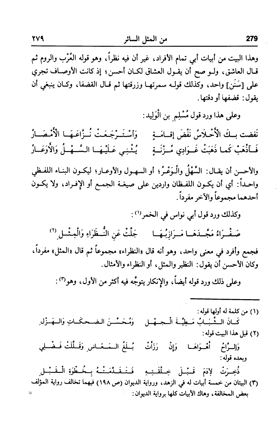 وعلى هذا ورد قول مسلم بن الوليد: