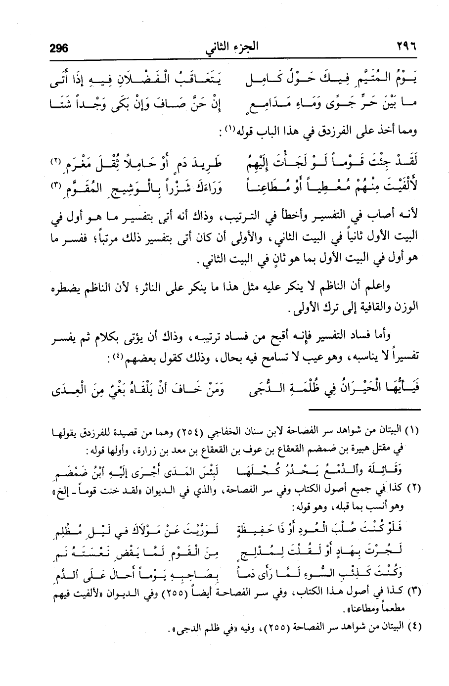 لأنه أصاب في التفسير وأخطأ في الترتيب، وذاك أنه أتى بتفسير ما هو أول في البيت الأول ثانيا في البيت الثاني، والأولى أن كان أتى بتفسير ذلك مرتبا؛ ففسر ما هو أول في البيت الأول بما هو ثان في البيت الثاني.