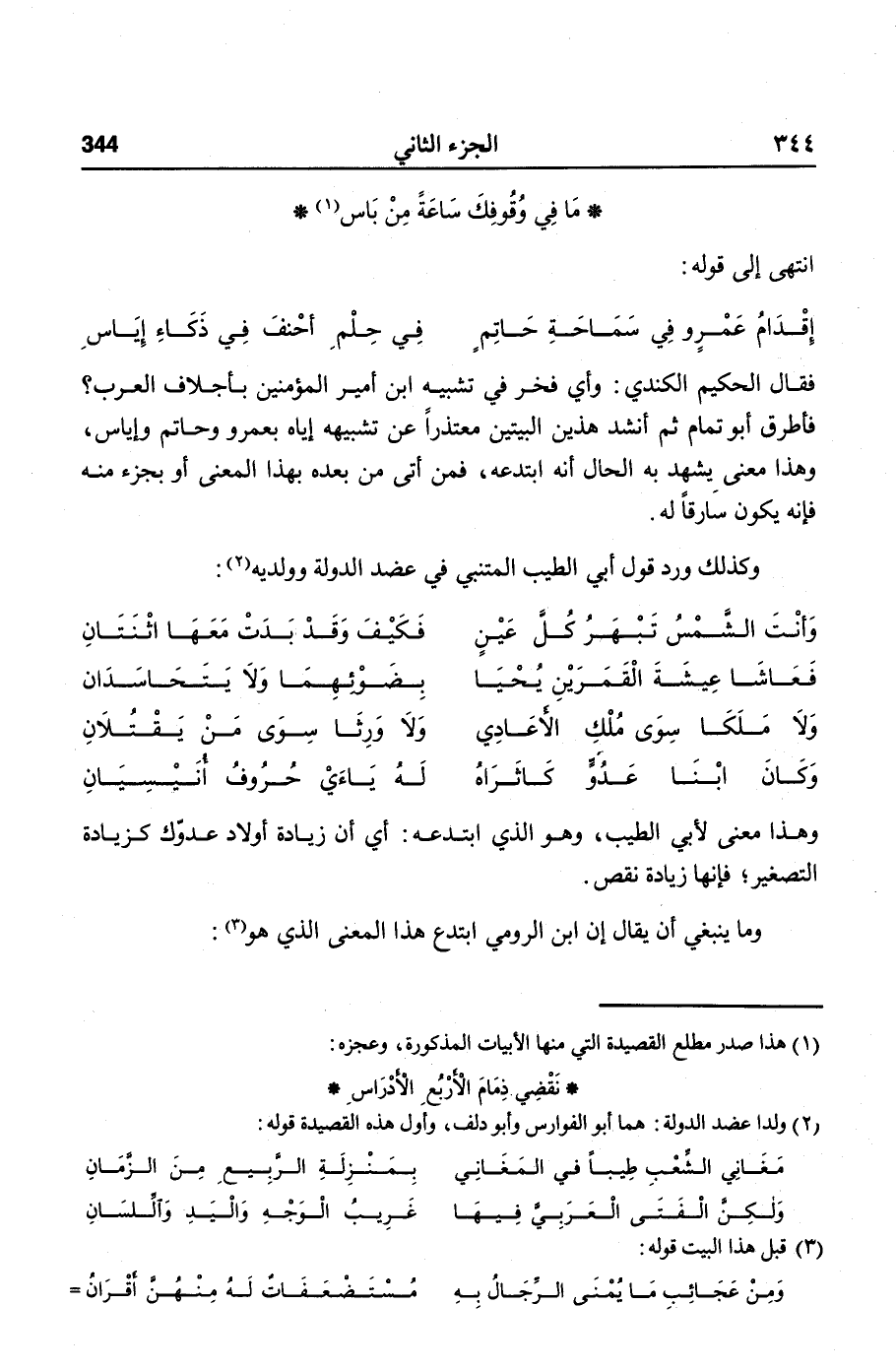 وكذلك ورد قول أبي الطيب المتنبي في عضد الدولة وولديه «2» :