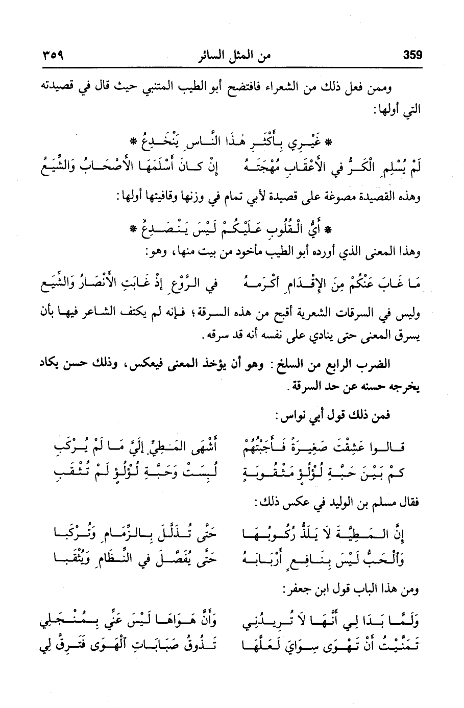 وليس في السرقات الشعرية أقبح من هذه السرقة؛ فإنه لم يكتف الشاعر فيها بأن يسرق المعنى حتى ينادي على نفسه أنه قد سرقه.