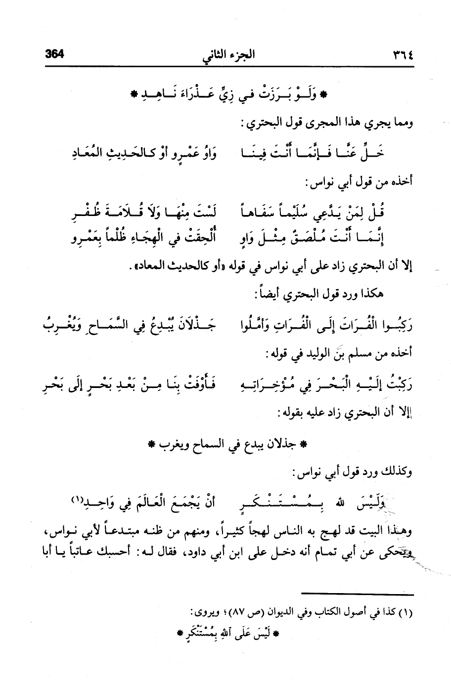 إلا أن البحتري زاد على أبي نواس في قوله «أو كالحديث المعاد» .