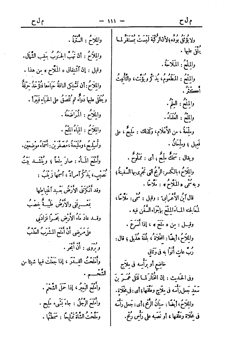 والمِلاحُ، بالكَسر: الرِّيحُ التي تَجْرِي بها السَّفينةُ؛ وبه سُمِّي " المَلَّاحُ ": مَلَّاحًا.