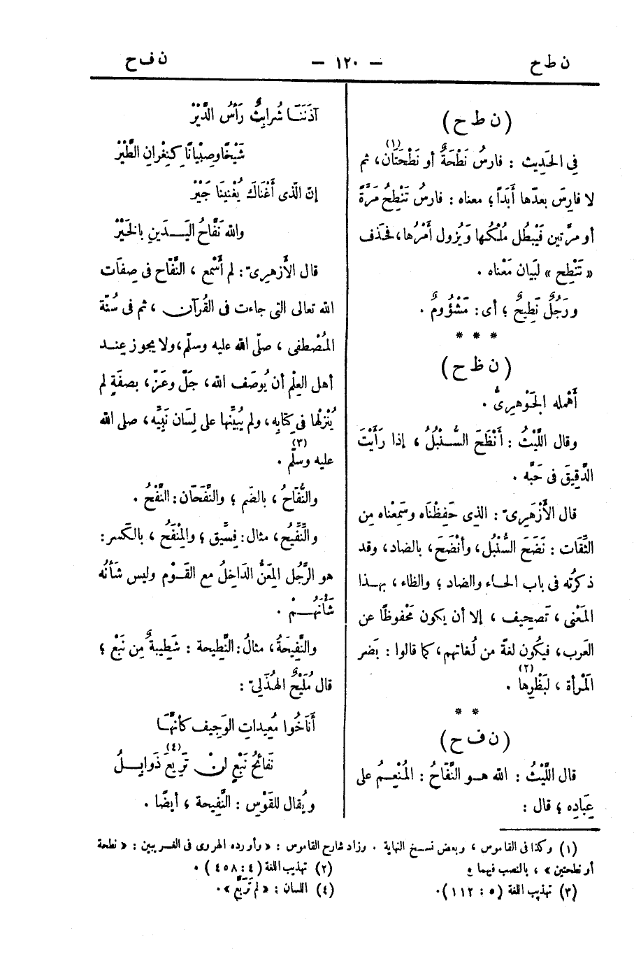 قال الأَزهرِيّ: لم أَسْمع، النَّفّاح في صِفَات الله تعالى التي جاءت في القُرآن، ثم في سُنّة المُصْطفى، صلى الله عليه وسلم، ولا يجوز عِند أهل العِلْم أن يُوصَف الله، جَلّ وعَزّ، بصفَةٍ لم يُنْزلْها في كِتابِه، ولم يُبيِّنها على لِسَان نَبِيِّه، صلى الله عليه وسلم.