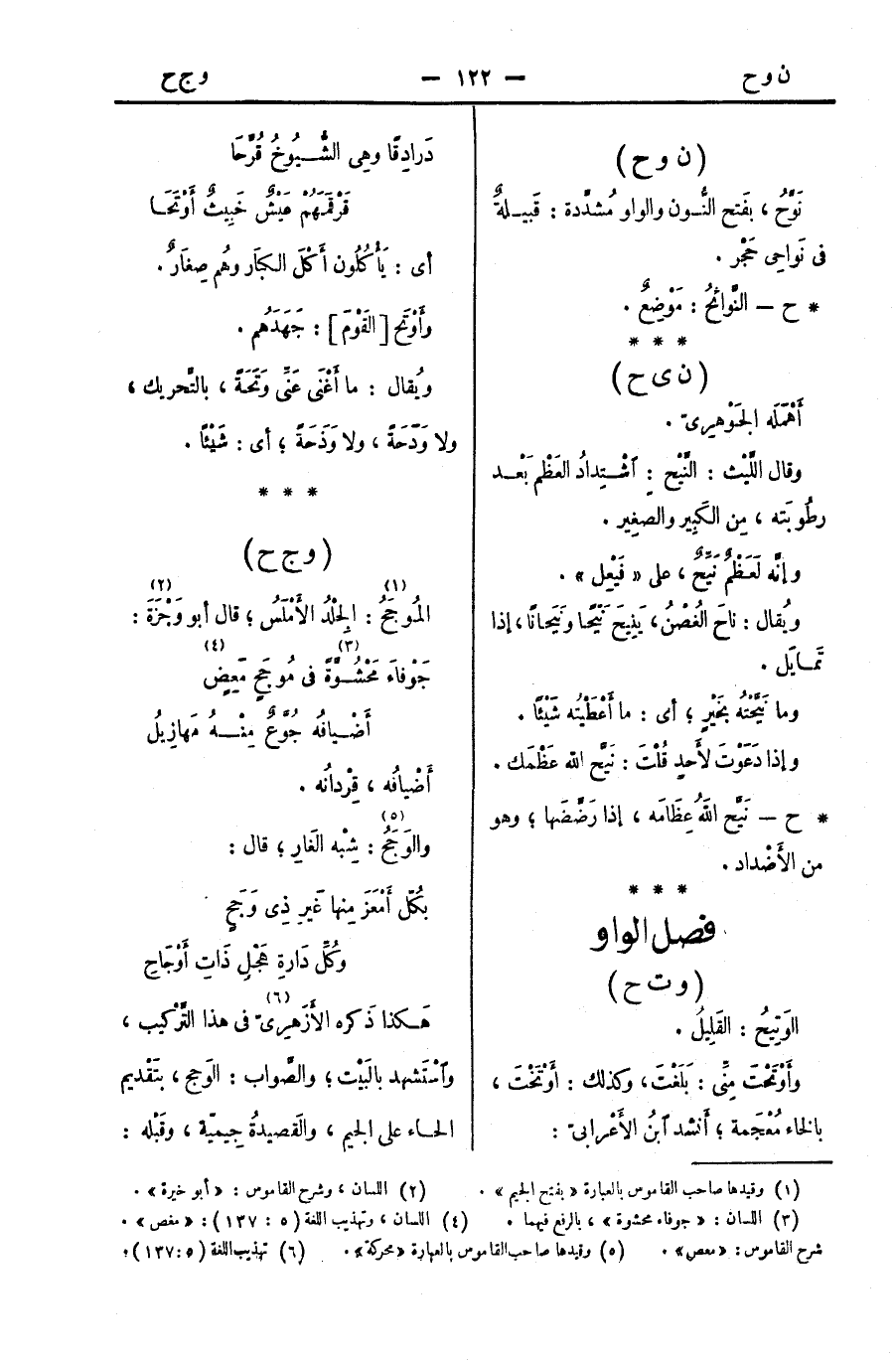 هَكذا ذَكره الأَزهَرِيّ في هذا التَّرْكيب، واسْتَشهد بالبَيْت؛ والصَّواب: الوَحج، بتَقْديم الحاء على الجيم، والقَصيدةُ جِيميّة، وقَبْله:
