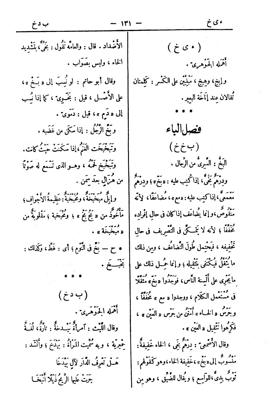 وقال أبو حاتم: لو نُسِبَ إلى " بَخْ "، على الأَصْل، قيل: بَخَوِيّ، كما إذا نُسِب إلى " دَمٍ "، قيل: دَمَويّ.