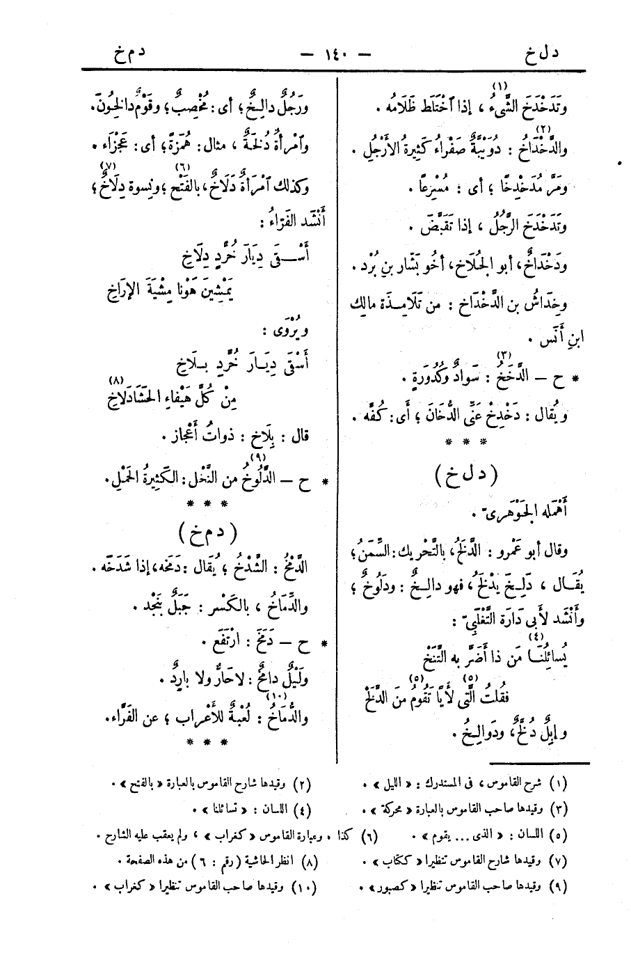 وقال أبو عَمْرو: الدَّلَخُ، بالتَّحْريك: السِّمَنُ؛ يُقَال، دَلِخَ يَدْلَخُ، فهو دالِخٌ: ودَلُوخٌ؛ وأَنْشَد لأَبي دَارةَ التَّغْلَبِيّ: