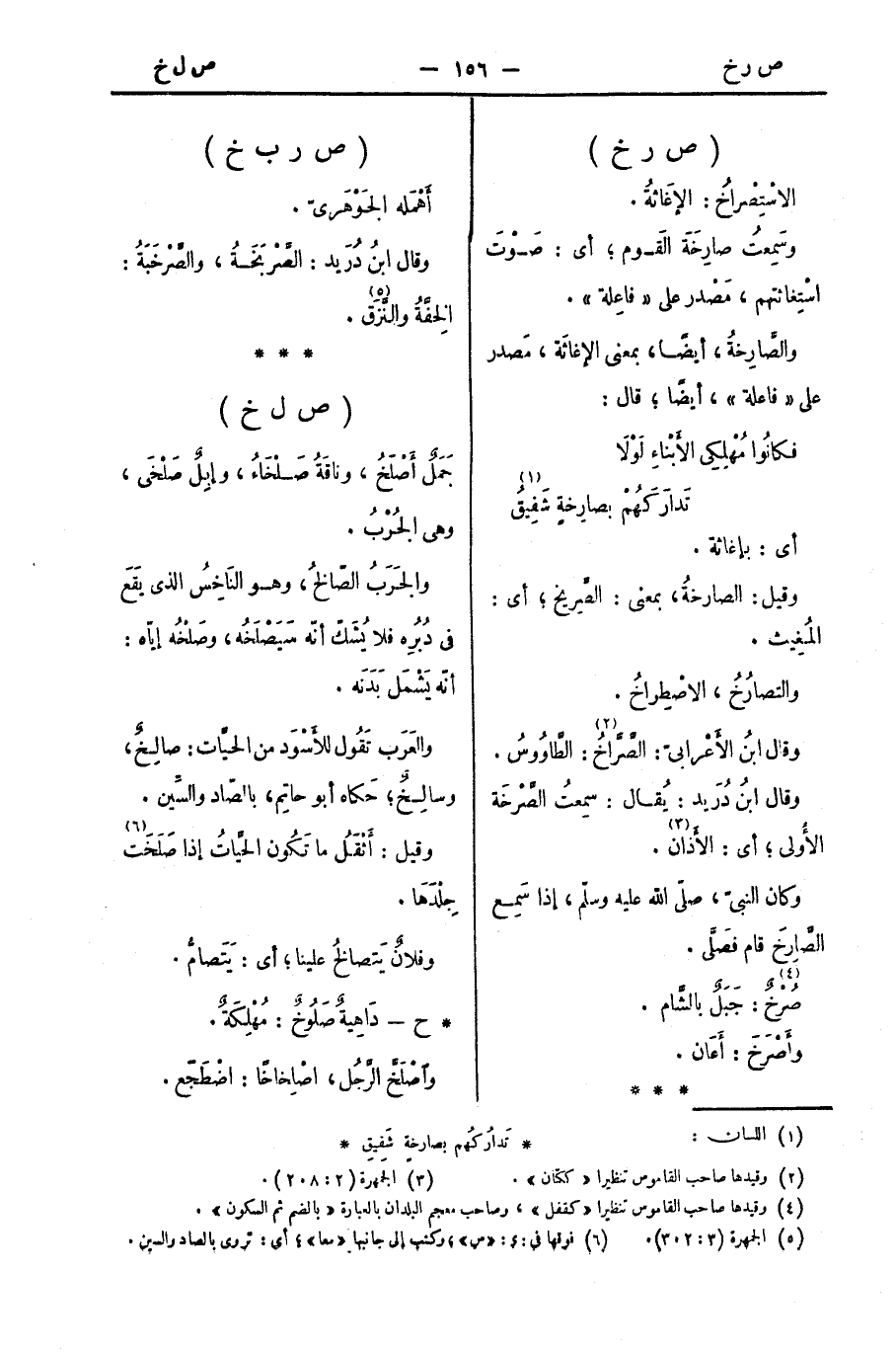 والصَّارِخةُ، أيضًا، بمعنى الإغاثَة، مَصدر على " فاعلة "، أيضًا؛ قال: