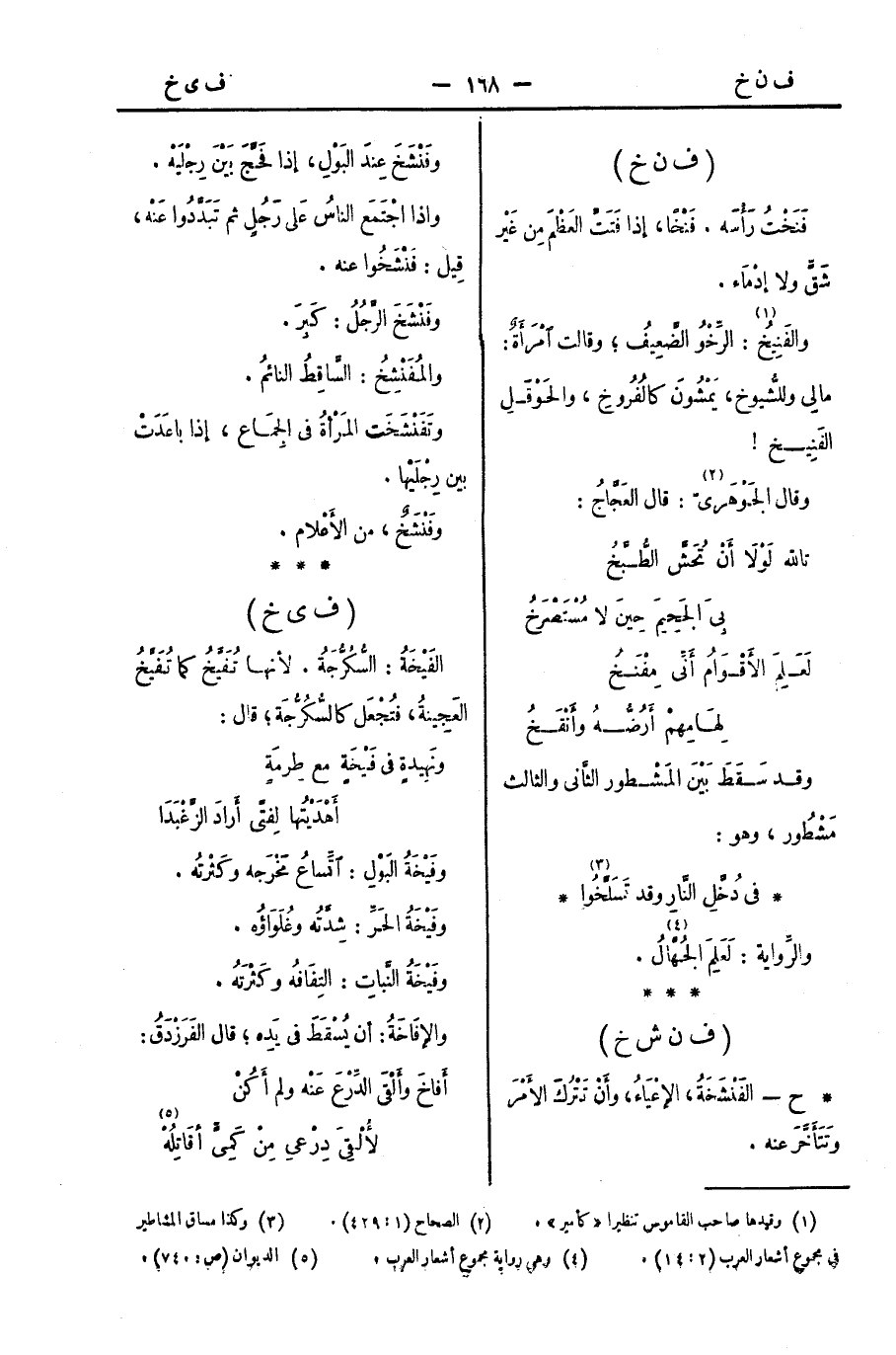 وفَنْشَخَ عِندَ البَوْلِ، إذا فَحَّجَ بَيْنَ رِجْلَيْه.
